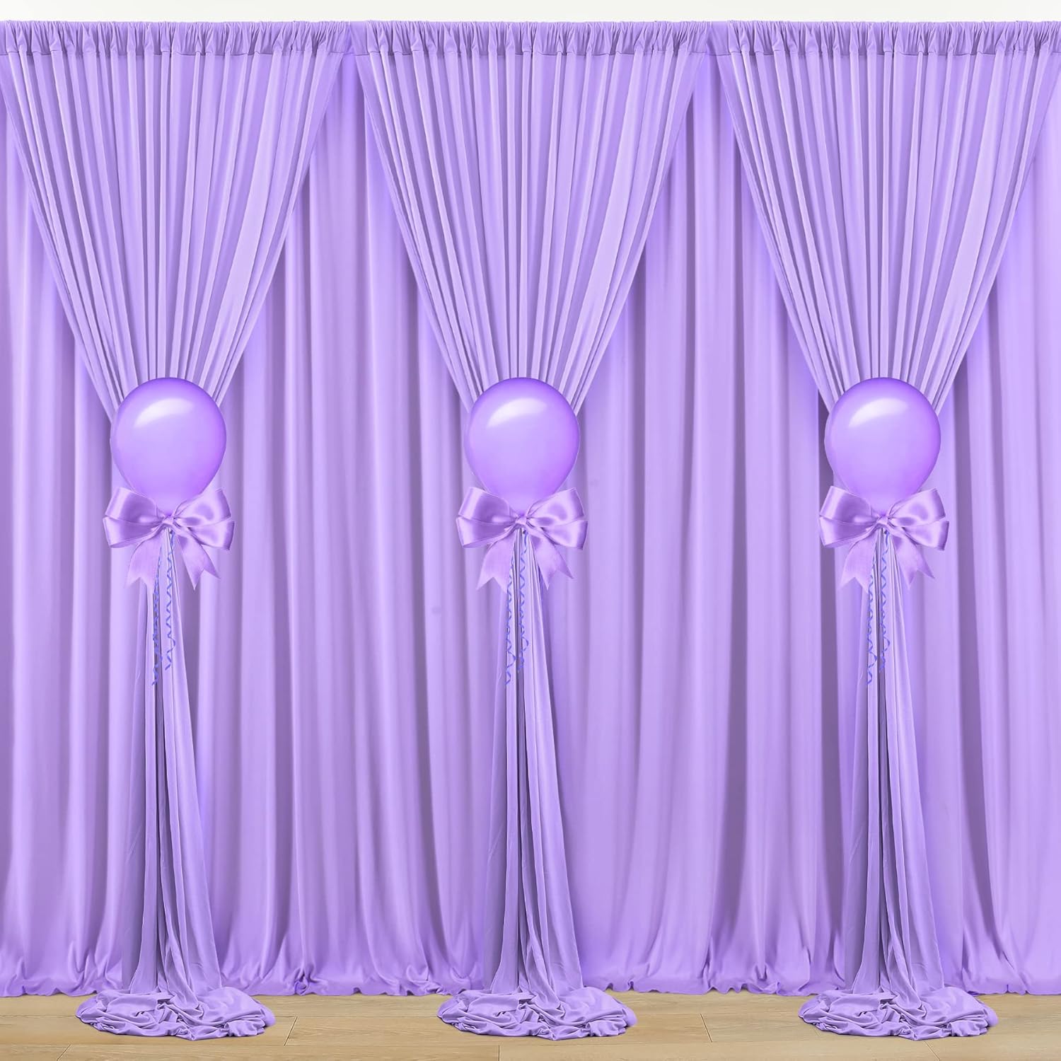 40 ft x 10 ft Wrinkle Free Lavender Backdrop Curtain for Parties, Polyester Light Purple Photo Backdrop Drapes 8 Panels 5x10ft for Baby Shower Photoshoot Wedding Birthday Party Photography Curtains