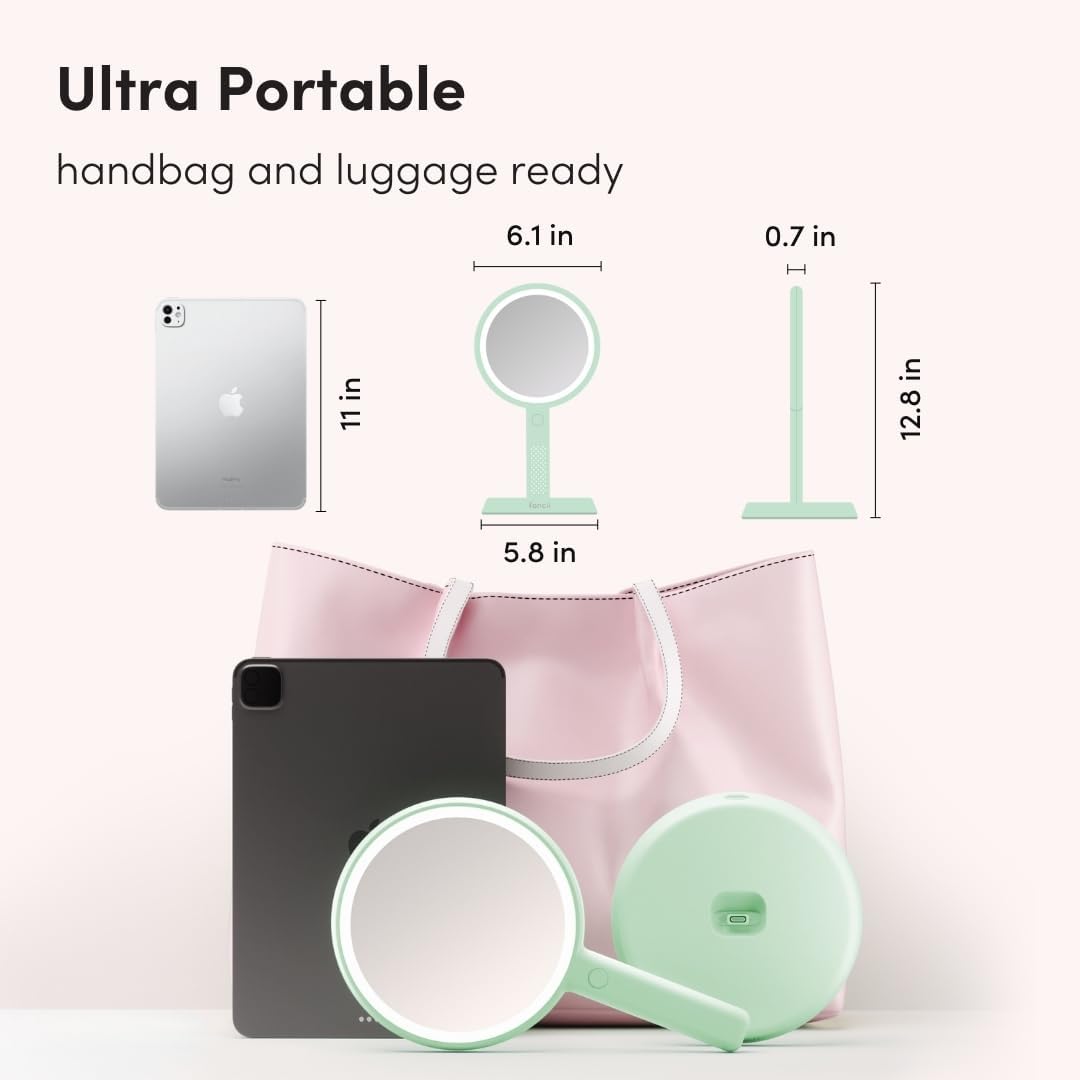 • Handheld & Hands-Free โ€“ Use Cami as a handheld mirror or attach it to the included stand for a vanity setup. The stand tilts up to 30ยฐ for hands-free, precise makeup and grooming.
