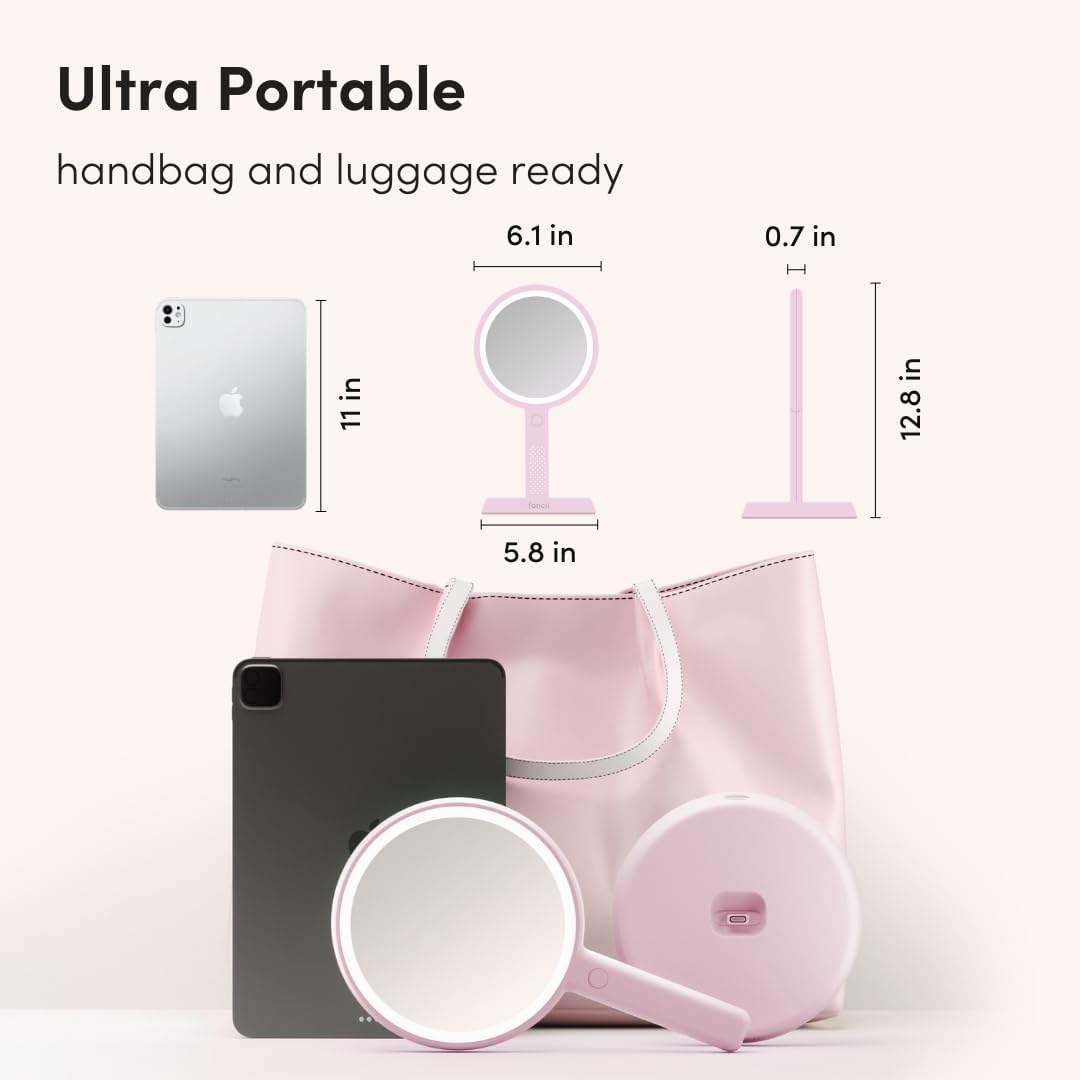 • Handheld & Hands-Free โ€“ Use Cami as a handheld mirror or attach it to the included stand for a vanity setup. The stand tilts up to 30ยฐ for hands-free, precise makeup and grooming.