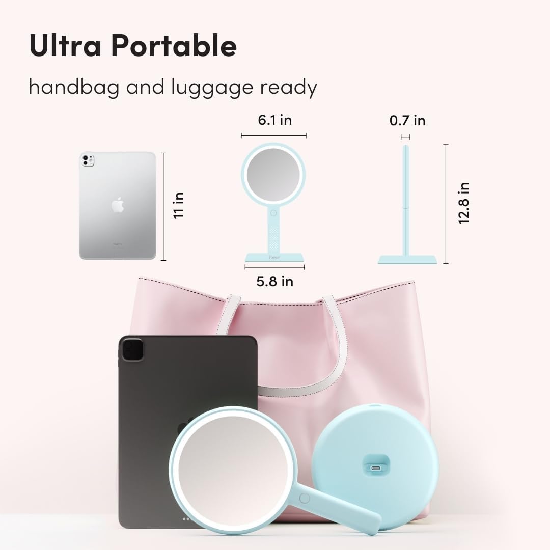 • Handheld & Hands-Free โ€“ Use Cami as a handheld mirror or attach it to the included stand for a vanity setup. The stand tilts up to 30ยฐ for hands-free, precise makeup and grooming.