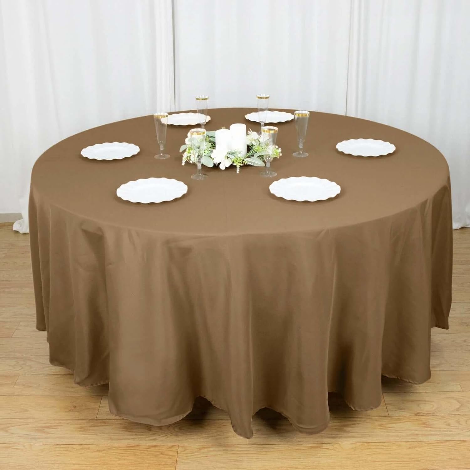 Efavormart Round Tablecloth, 108 Inch Stain & Wrinkle Resistant Washable Table Cloth, Decorative Polyester Fabric Table Cover for Banquet, Wedding, Dining- Taupe