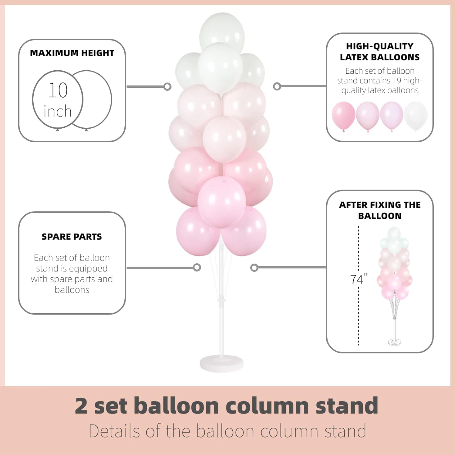 Balloon Column Kit Set of 2 With Baby Pink Chrome Balloons Included - with Base,Pole,Balloon Tower Backdrop Decoration for Wedding,Baby Shower, Birthday,Princess Party, or Bachelorette