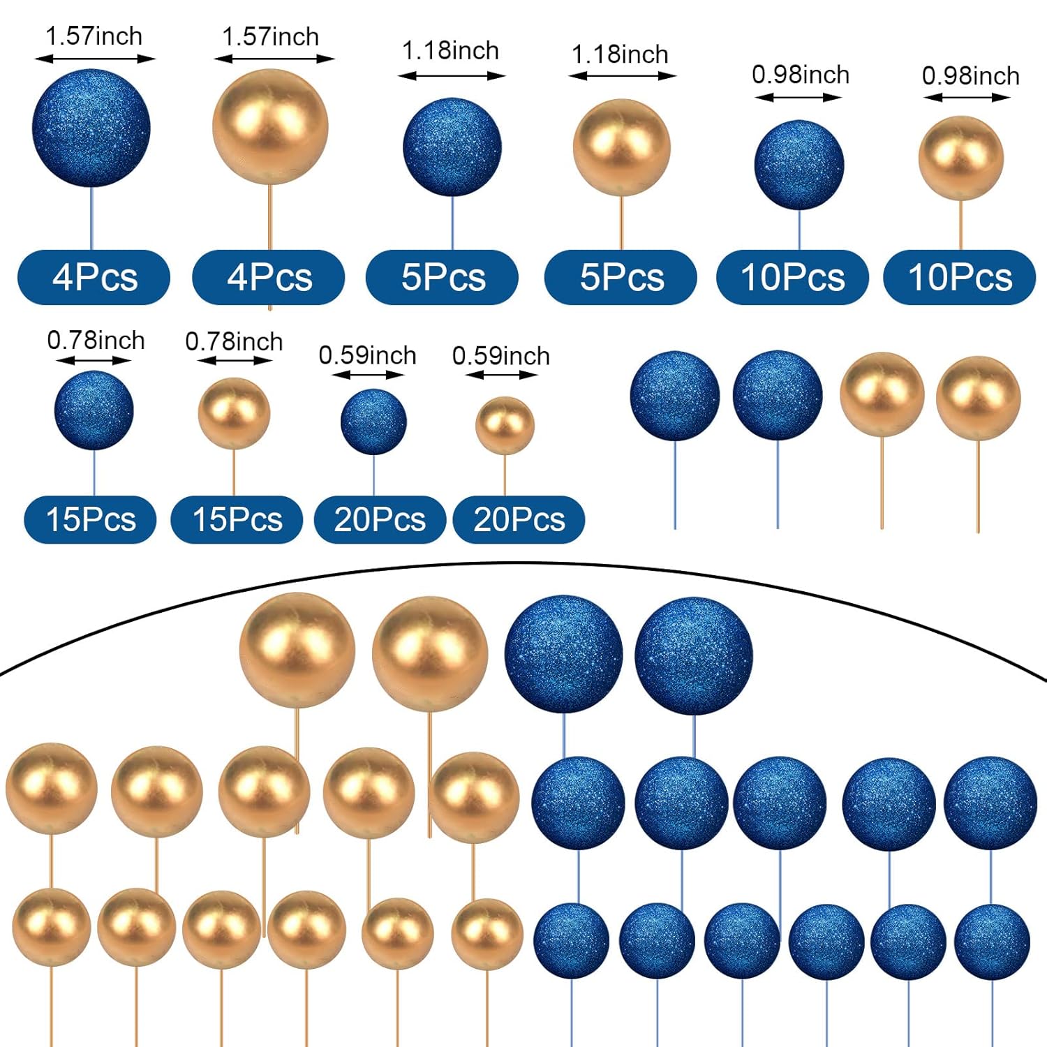 • Various Sizes: these ball cake toppers come in 5 different sizes, including 4 cm/ 1.57 inch, 3 cm/ 1.18 inch, 2.5 cm/ 0.98 inch, 2 cm/ 0.79 inch and 1.5 cm/ 0.59 inch; You can make a proper position arrangement based on the size and shape of your cake, a variety of different sizes and different colors to suit your cake decorating needs