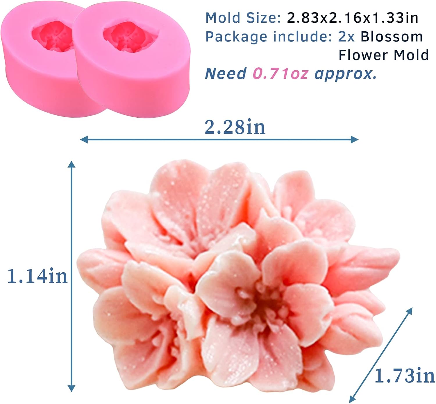 • 【WHAT YOU WILL RECEIVE】The package includes 2x blossom shape flower silicone molds. Each finished project size is about 2.56x1.77x1.10in. The practical size and exquisite design, make it perfect for daily use and would add a highlight decor for your room