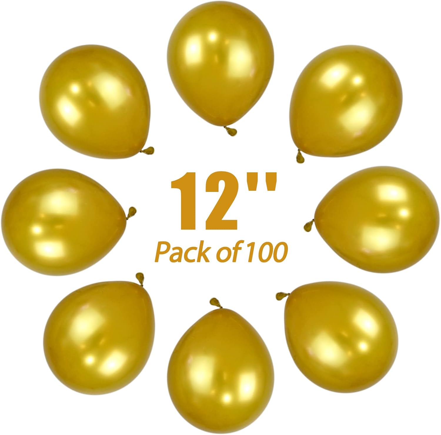 Gold Metallic Balloons 12 Inch, 100pcs Latex Helium Balloons for Birthday Graduation Baby Shower Wedding Anniversary Party Decorations