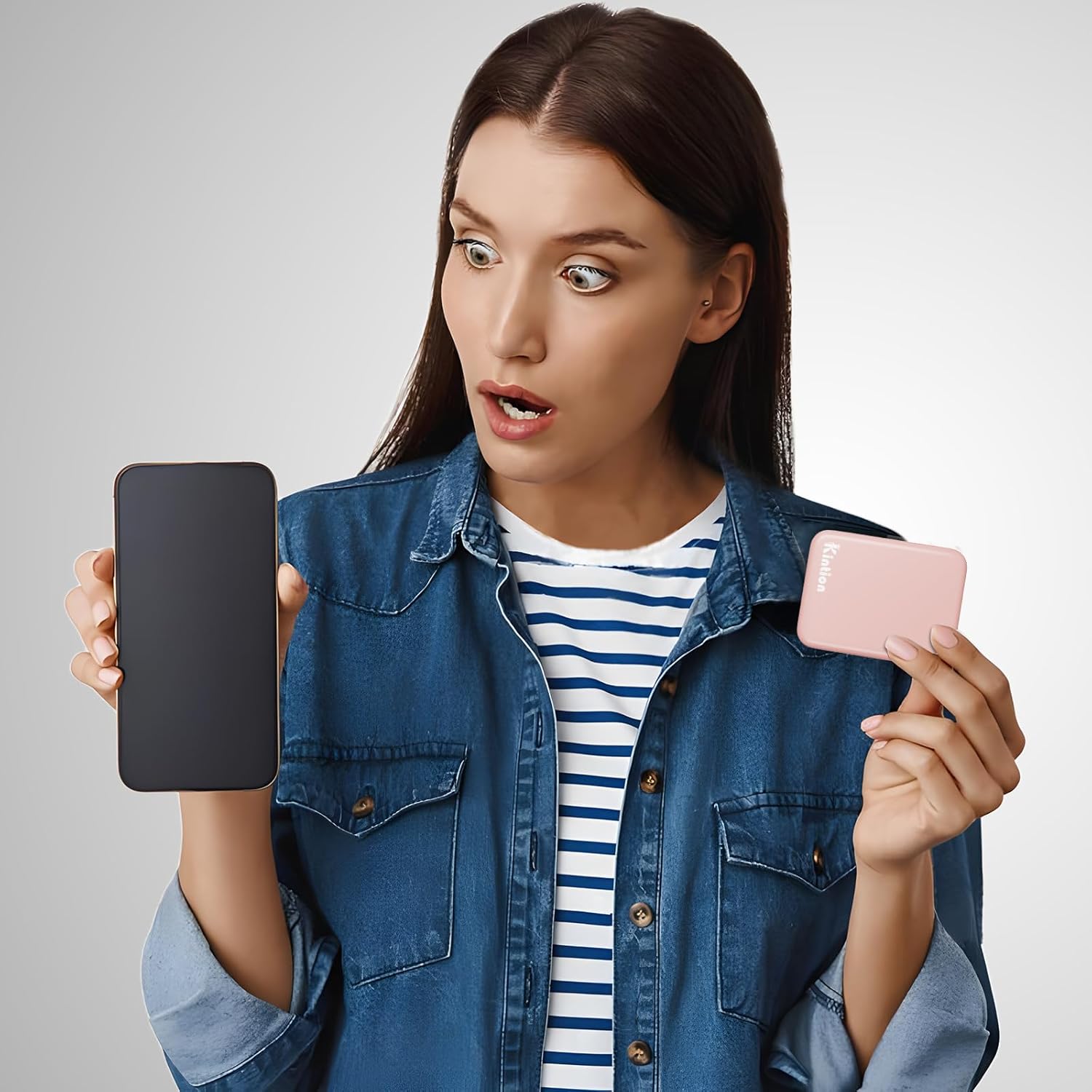 Kintion Rechargeable Pocket Mirror, Double Sided 1X/3X Magnification Compact Vanity Mirror, 3 Color Lights, Dimmable, Small Portable Wallet Mirror, Lighted Travel Mirror for Women Gifts, Pink