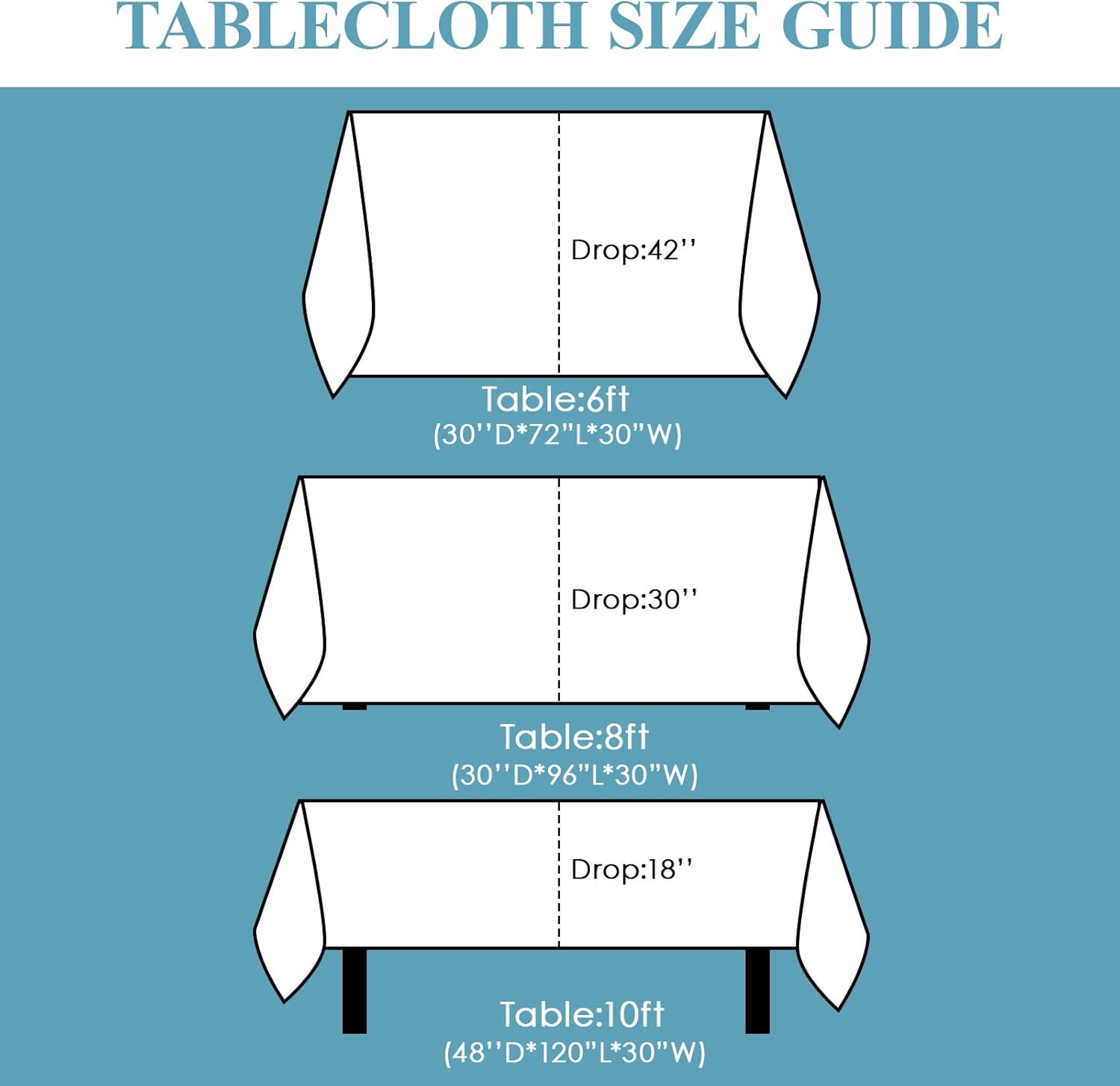 • Durable and Easy to Care: High quality polyester material makes the white tablecloth is durable, stains will not invade, and does not deform or shrink, while eliminating the problem of hand washing, machine wash and dry in cold water