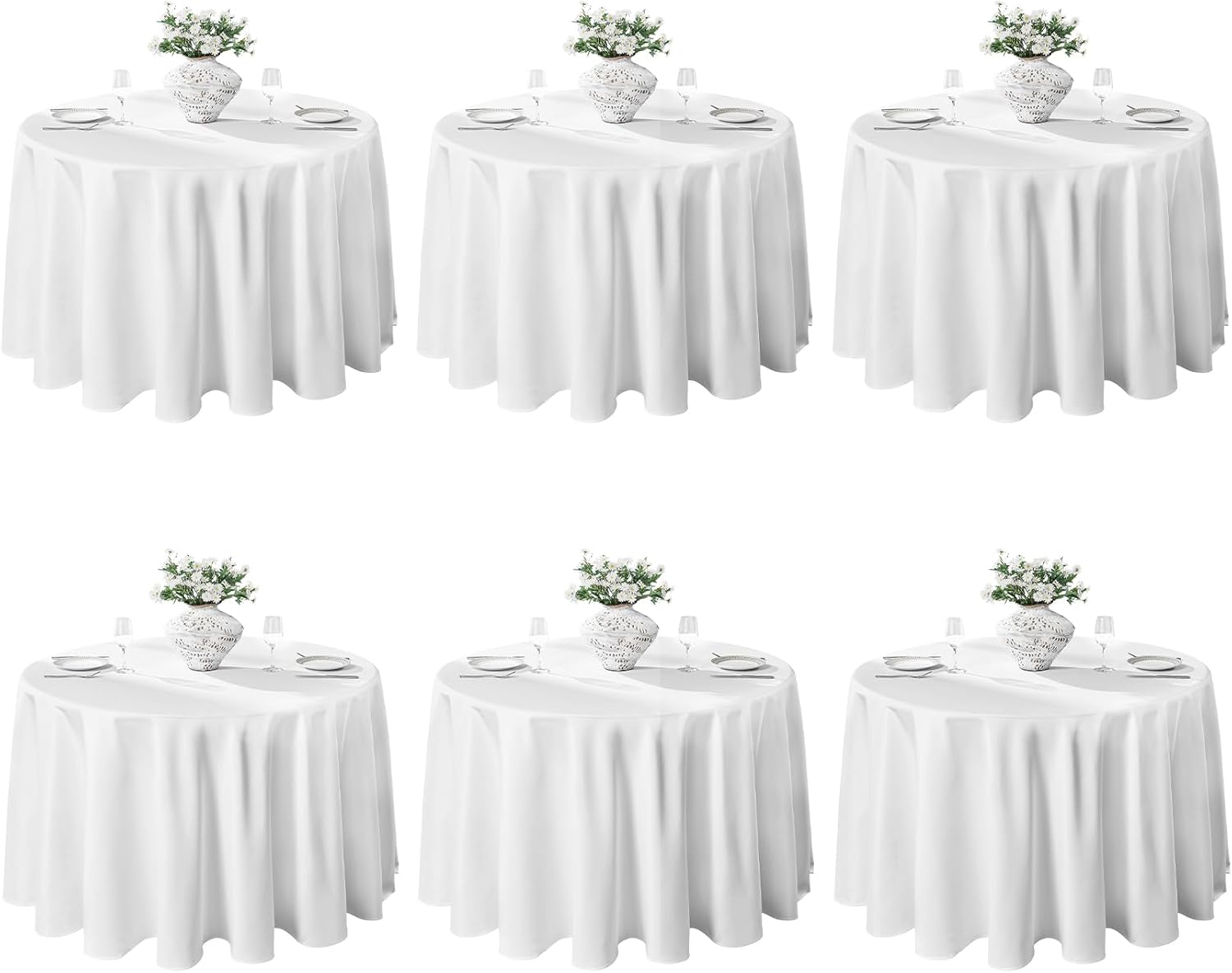 VidaFete 6 Pack 90inch Round Tablecloth Polyester Table Cloth,Stain Resistant and Wrinkle Polyester Dining Table Cover for Kitchen Dinning Party Wedding Rectangular Tabletop Buffet Decoration(White)