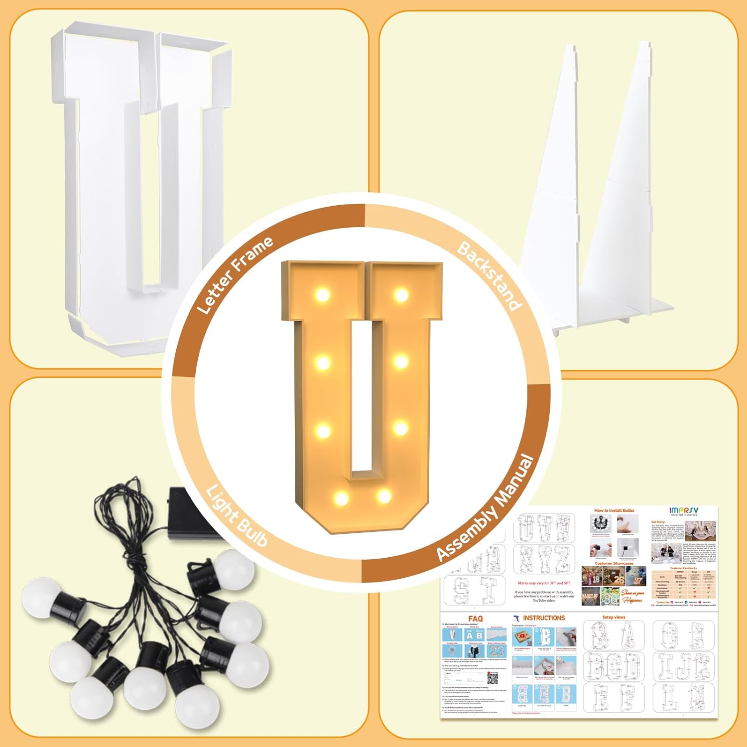 imprsv Marquee Light Up Letters, 3FT Marquee Letters for Birthday Baby Shower Wedding Decorations Light Up Letters for Engagement Party Decor, Large Marquee Letters for Party Decorations, Letter U