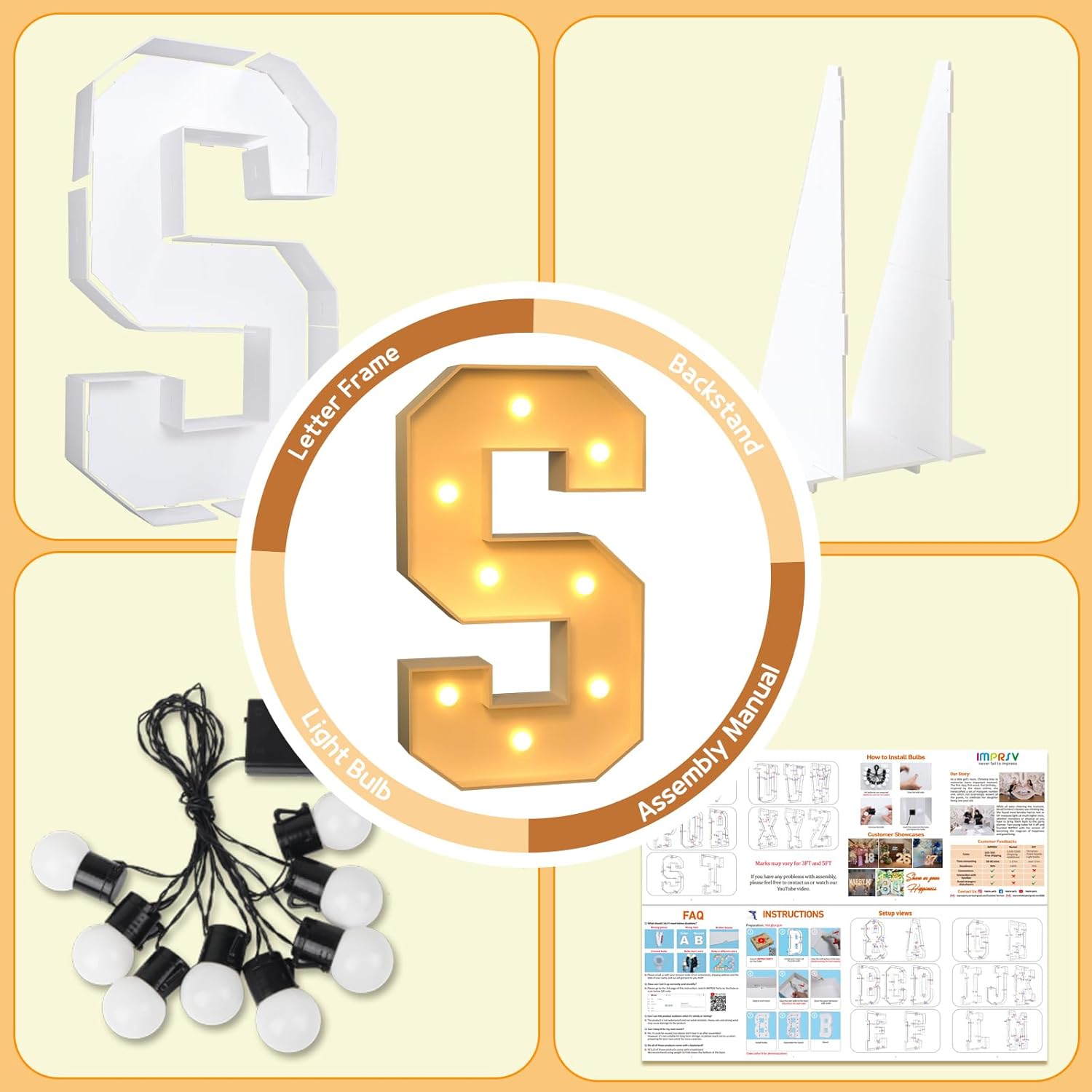 imprsv Marquee Light Up Letters, 3FT Marquee Letters for Birthday Baby Shower Wedding Decorations Light Up Letters for Engagement Party Decor, Large Marquee Letters for Party Decorations, Letter S