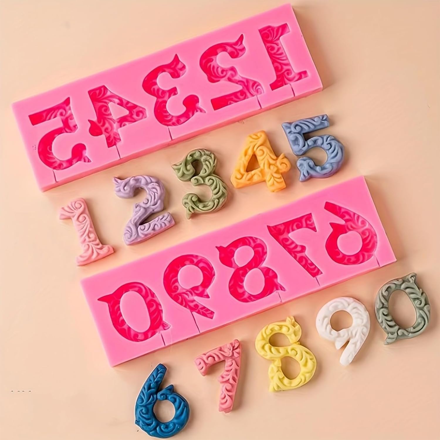 • Comes with 2 pack silicone fondant molds with 3D embossed number 0-9, detailed and exquisite design.