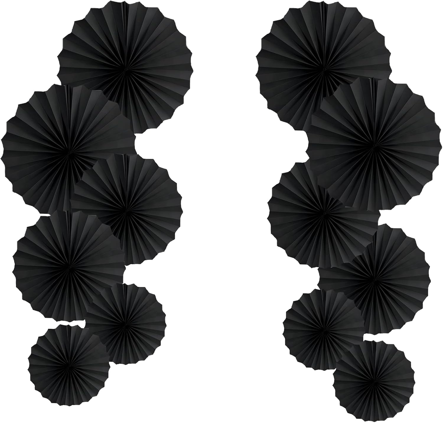 HQZ Black Party Hanging Fans DIY Set - 12pcs Set Pinwheels Fan DIY Paper Craft for Wedding, Birthday, Christmas Party Decoration