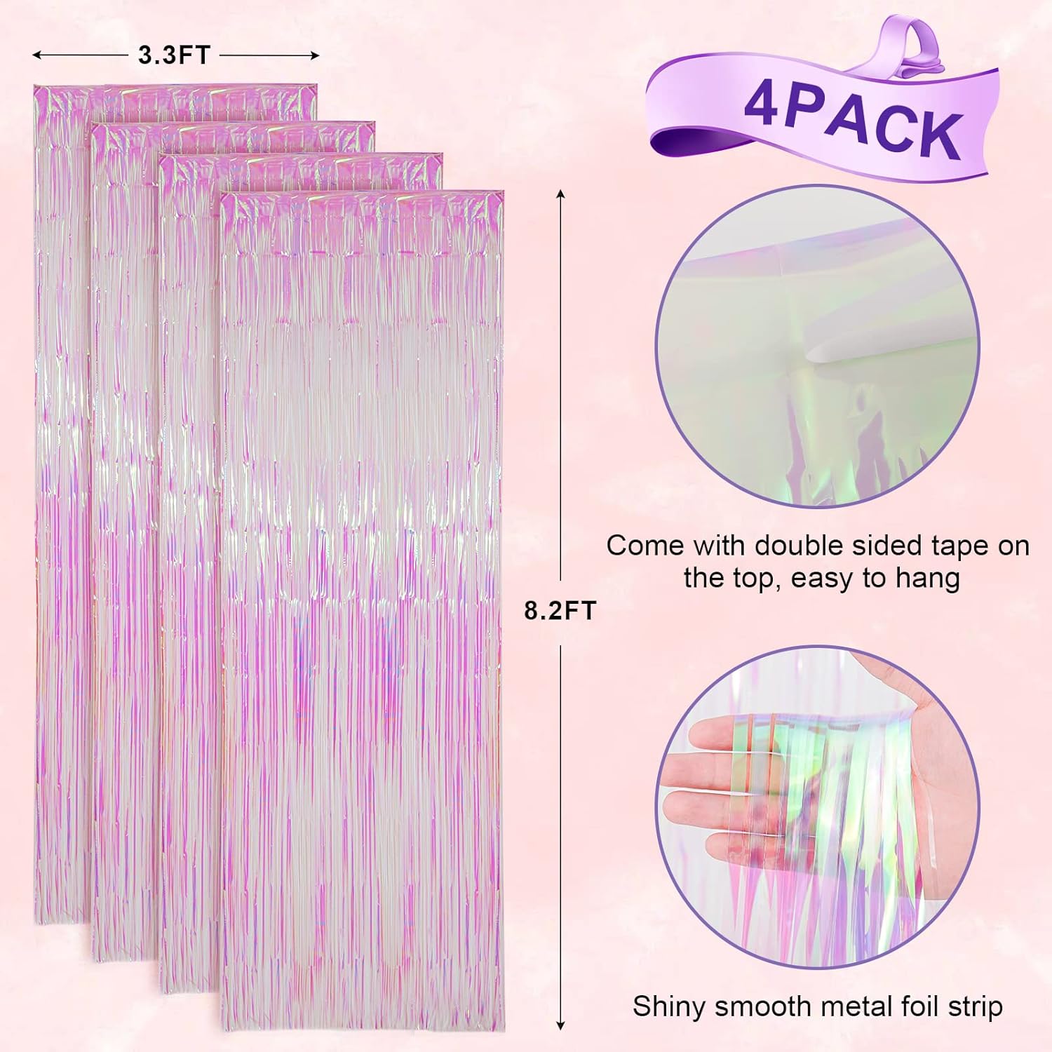 4 Pack Iridescent Transparent Foil Fringe Backdrop Curtains, Tinsel Streamers Birthday Party Decorations, Fringe Backdrop for Graduation, Baby Shower, Gender Reveal, Disco Party