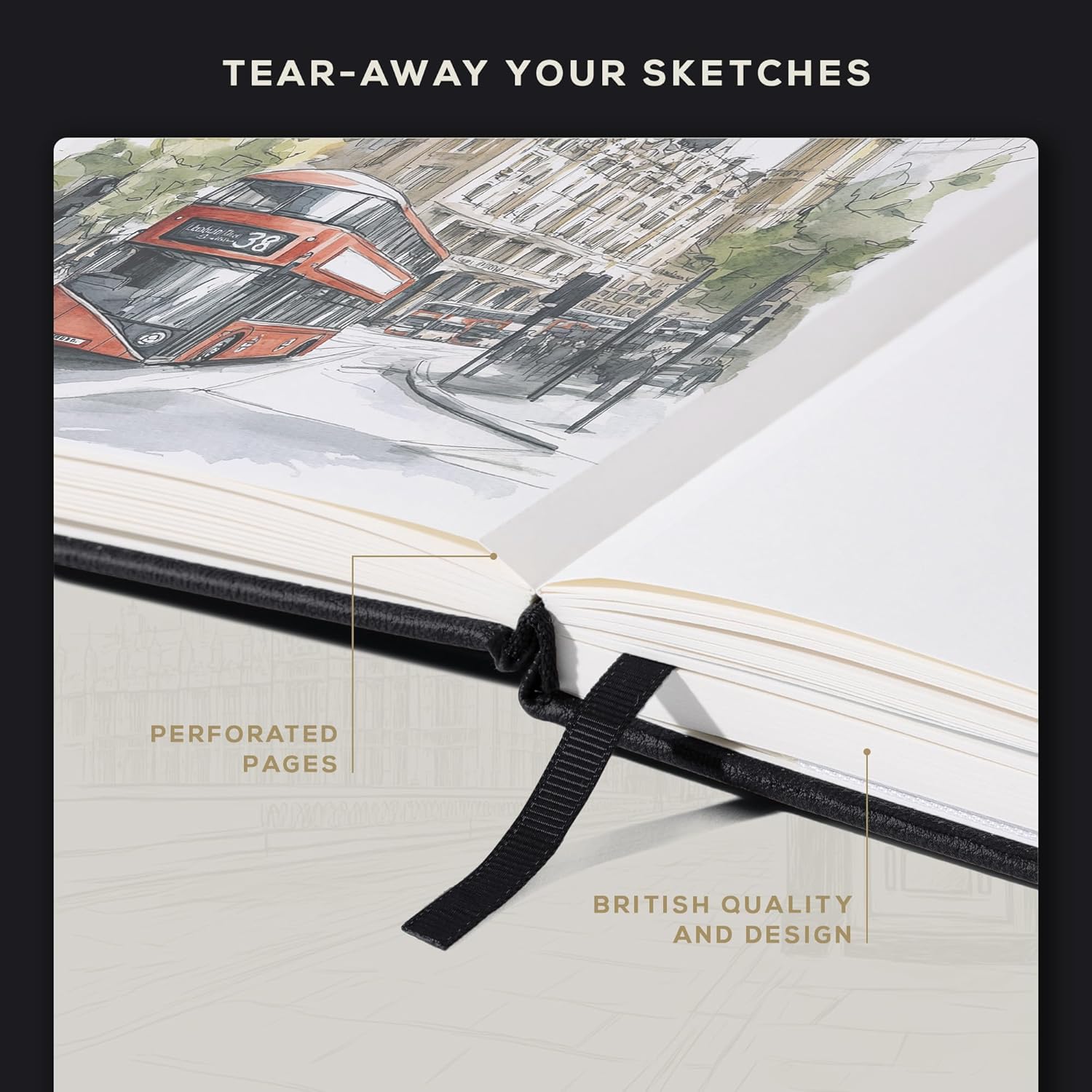 • Elegant & Durable Construction - Built to last with a robust vegan leather hardcover and thread-binding, this A4 large sketchbook combines timeless British-inspired design with lasting reliability for your artistic vision.