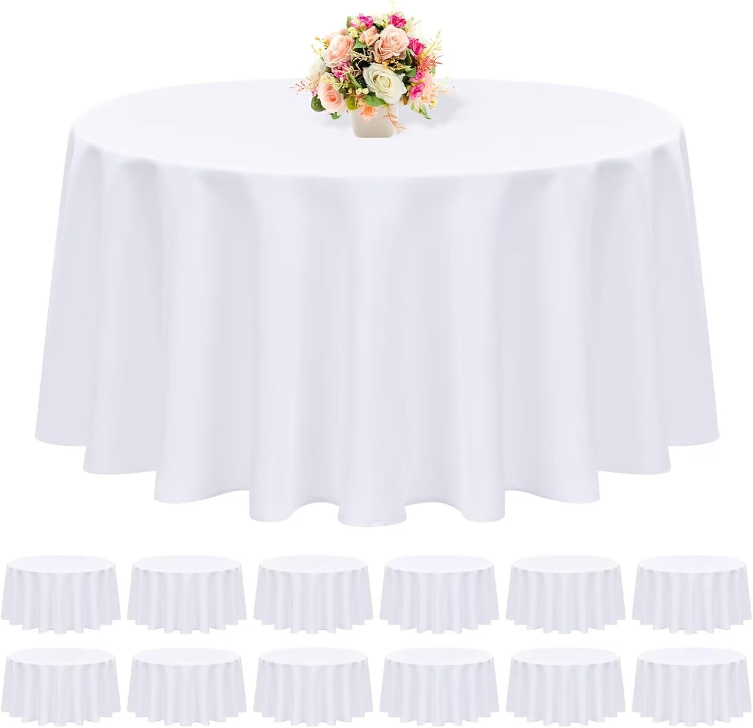 12 Pack Round Tablecloth 90 Inch - White Polyester Tablecloth for Round Table, Premium Stain and Wrinkle Resistant Washable Fabric Table Cover for Wedding Party Banquet Restaurant Reception