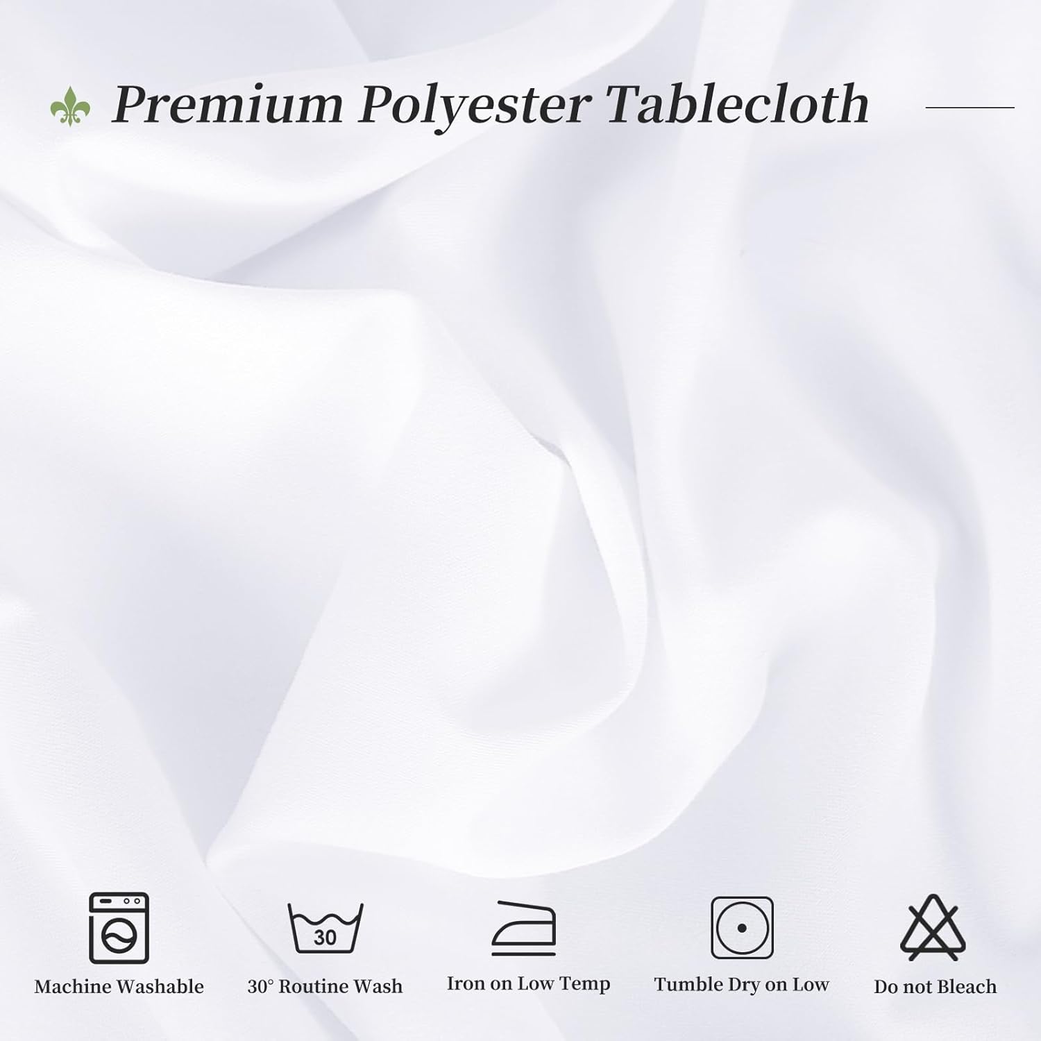 • 【Exquisite Workmanship】This tablecloth is a 1-piece seamless premium table cloth. Every part of the tablecloths is flat and smooth. The white round table cover are designed with folded borders and fine stitching to ensure an elegant look and no loose threads. Our color-fast dyes stay vibrant and true, and will not fade or transfer during washing or use. The party round polyester tablecloth makes your dining table neat, elegant and stylish.