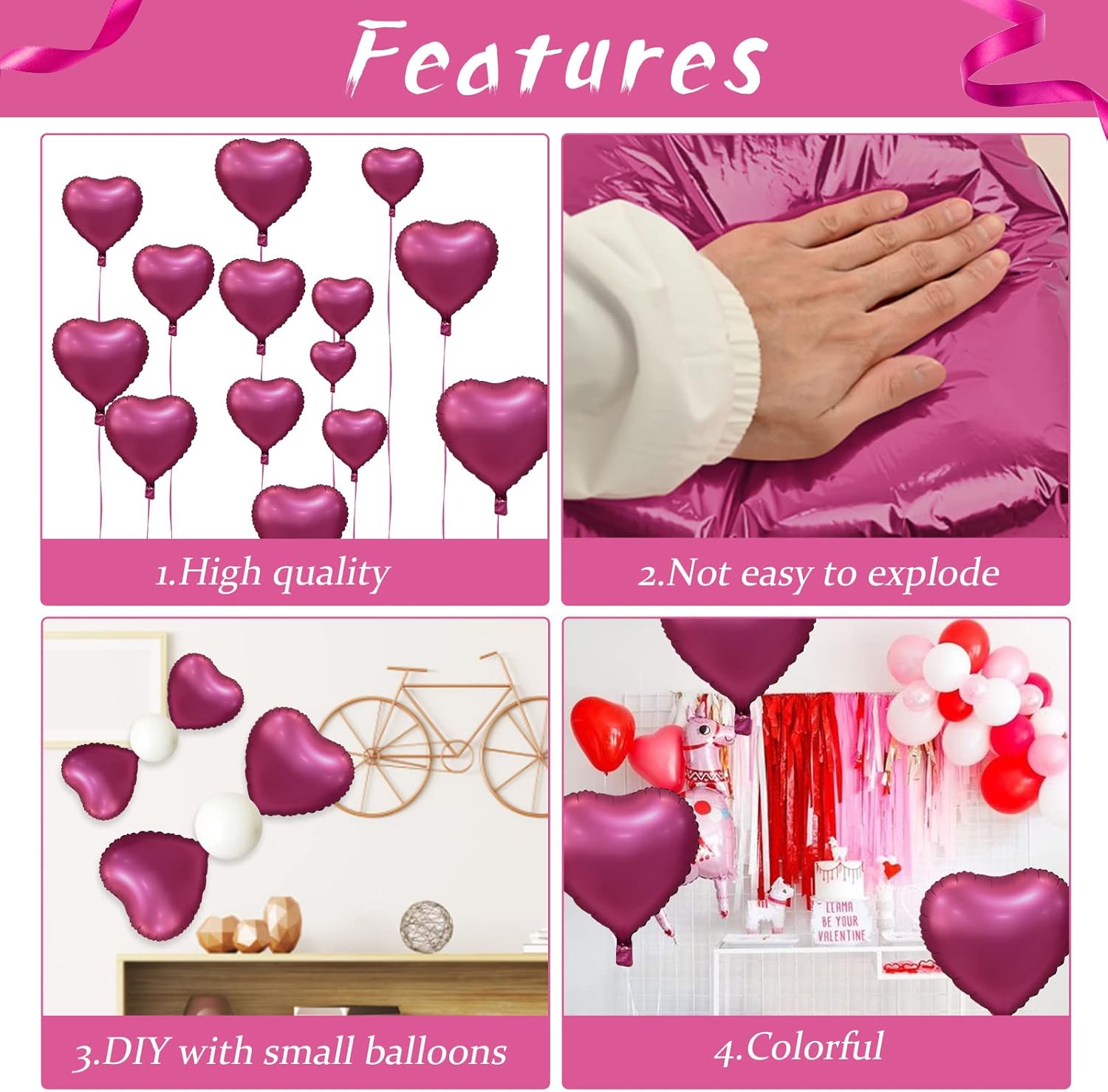 • πŸ’– 10 PCS PINK FOIL HEART BALLOONS: Package contains 10 x 18 inch hot pink heart balloons, 1 x 10m ribbon.The hot pink heart shape balloons are specially shaped, the perfect size for your holiday or party decorating needs, together create a fun and surprising party, leave an unforgettable smile!