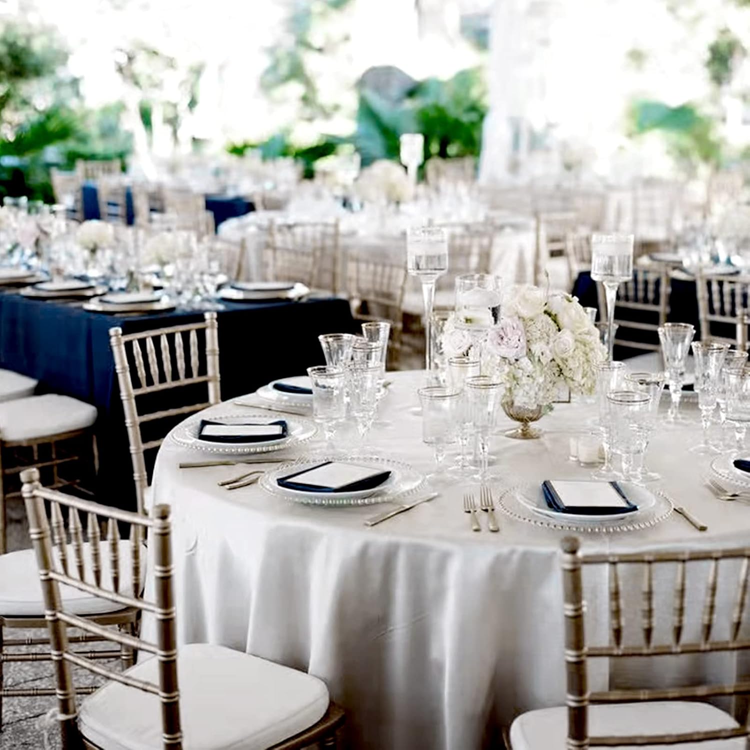 • 🍙【Widely Applications】This silver table cover is great for various of formal occasions, such as wedding, dinner, conference, celebration, ceremony, all kinds of parties etc.; it can be served as commonly used item or decoration for restaurant, hotel, kitchen, and family dining room, which can bring you a lot of convenience. It not only protects the table, but also adds a romantic, elegant, noble, comfortable and warm atmosphere.