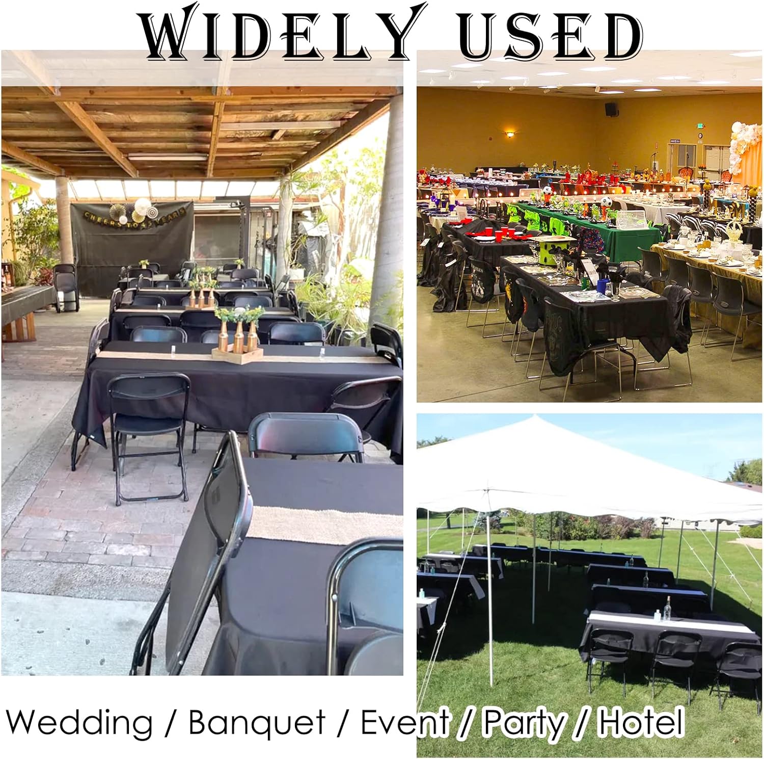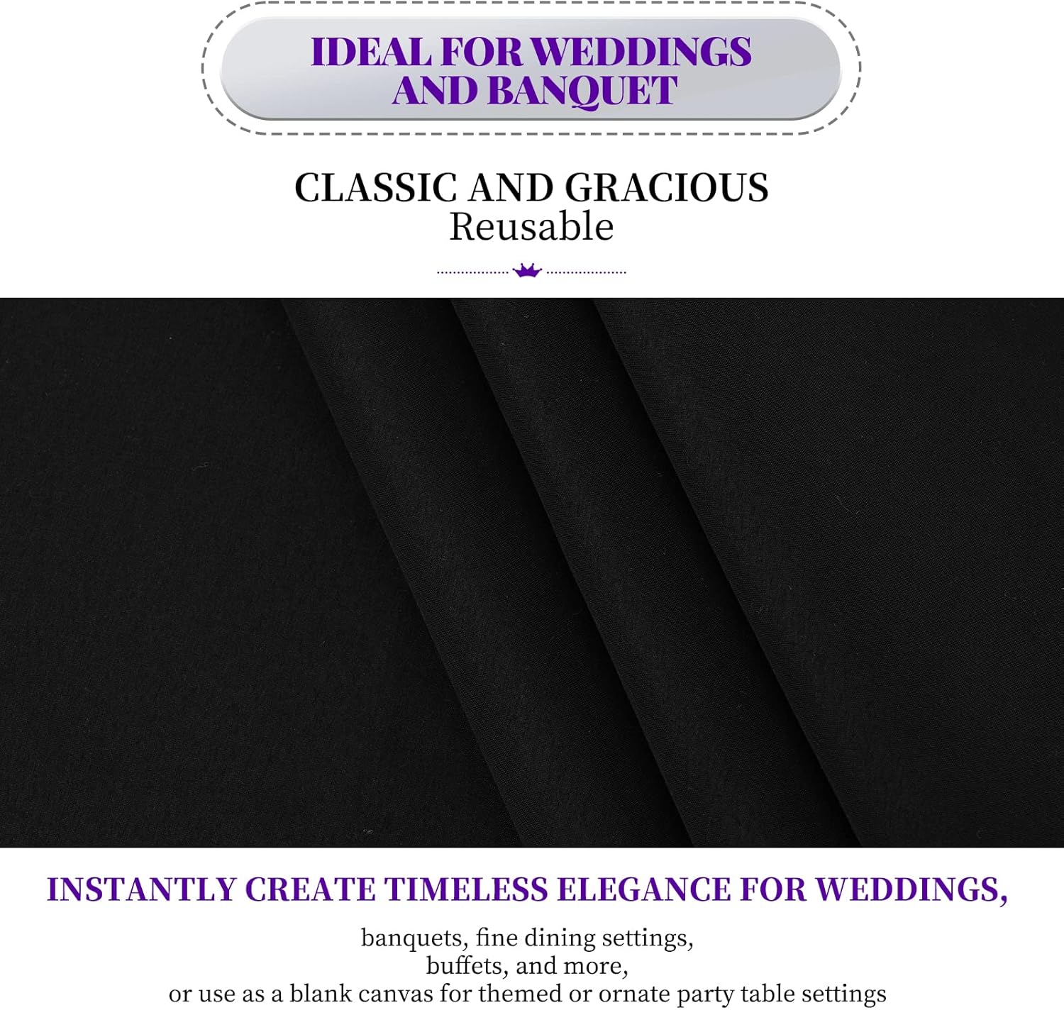 • 🥂【Decorative Table Covers】Polyester is an efficient and economical choice for a tablecloth, it's extremely versatile and can be dressed up for an ultimate glam event, dressed down for a rustic vintage both wedding, and can even be used as a clean and modern look for a minimalist event. Classic colors to meet your different subject of events, like weddings, banquets, birthday or dinner party, bridal or baby shower, candy buffet,and other everyday functional or decorative use.