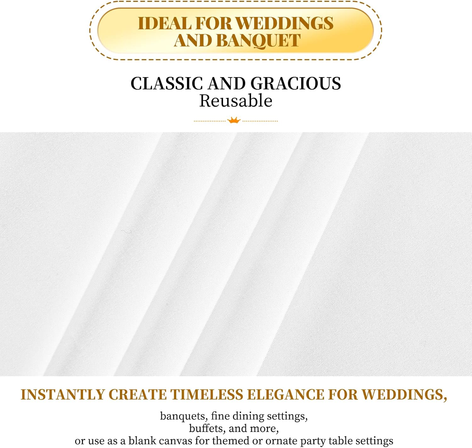• 【Premium Tablecloth Fabrics】You can get 12 pieces white tablecloth, our tablecloth is made of soft premium polyester fabric that resists wrinkling for an always crisp, polished look. These materials are as skin-friendly as they are environmentally friendly. Excellent to protect and decorate your tables.