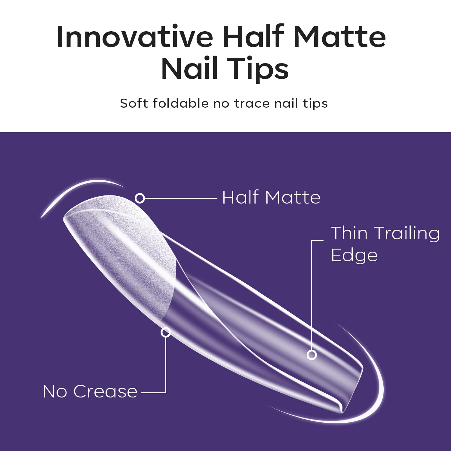 • Premium Quality Nail Tips: Get ready to achieve salon-quality nails from the comfort of your own home with our full cover half matte false nail tips! Made from top-notch materials that are both breathable and lightweight, these tips provide a natural, sophisticated look that's sure to turn heads. And best of all, they contain no toxins, emit no unpleasant odors, and pose no harm to your health or nails. With their pre-shaped design, they're a cinch to apply, too
