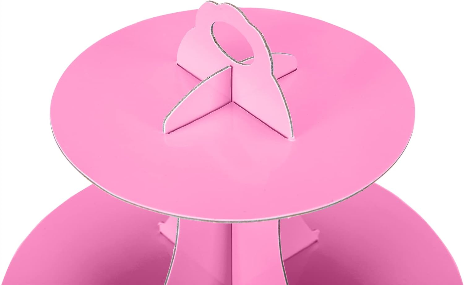 2Pcs 3-Tier Cupcake Stand, Cake Stand holder, Tiered DIY Cupcake Stand Tower for Dessert Table Displays, Birthday Theme Party Favors Decoration, Floral Tea Party, 12" W x 12.8" H, Pink