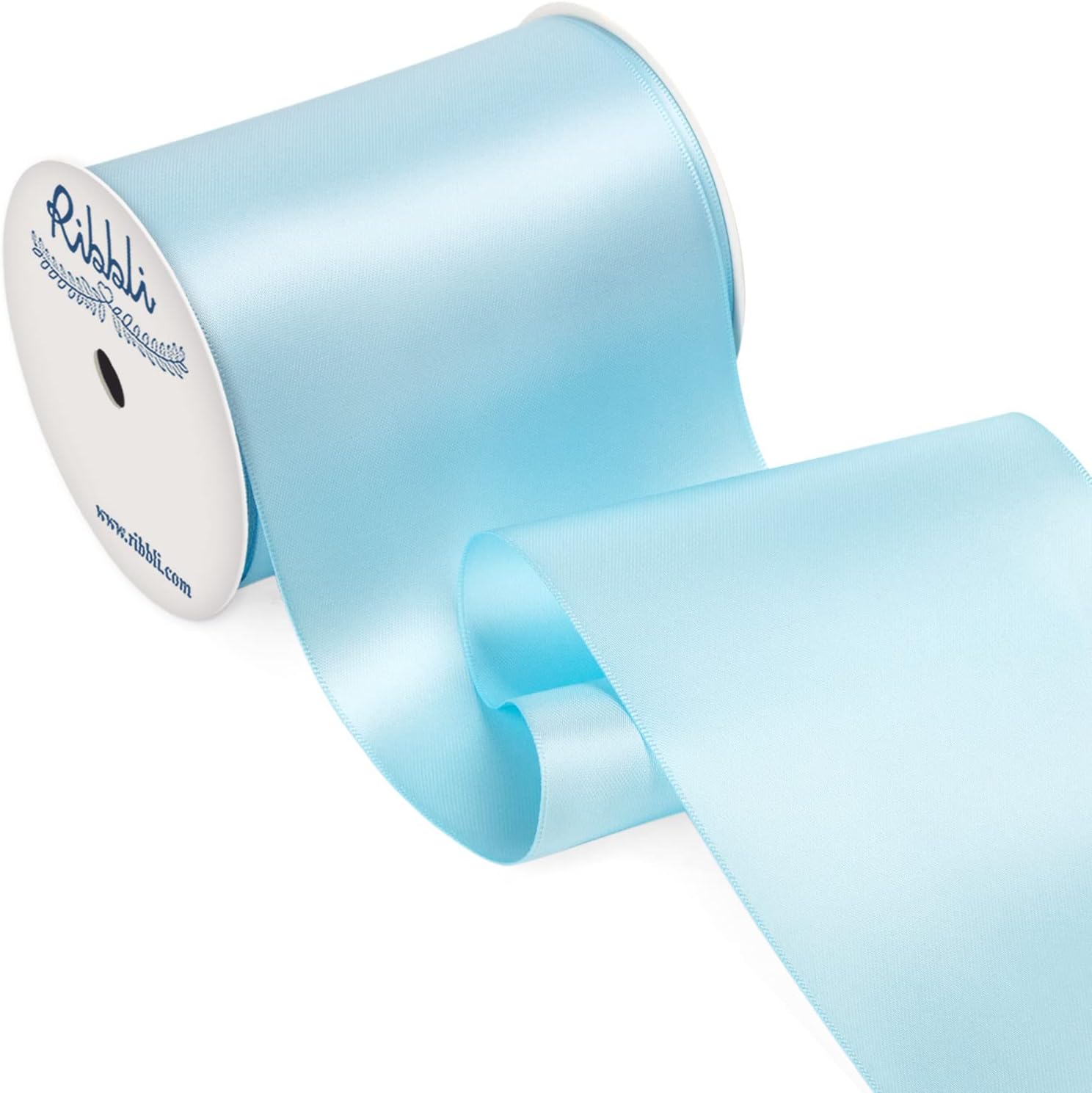Ribbli Light Blue Satin Ribbon 4 Inch Wide Baby Blue Ribbon for Wedding Chair Sash Grand Opening Ceremony Big Bows Gift Wrapping Floral Crafts Cake Decor-Double Faced Satin Continuous 10 Yards