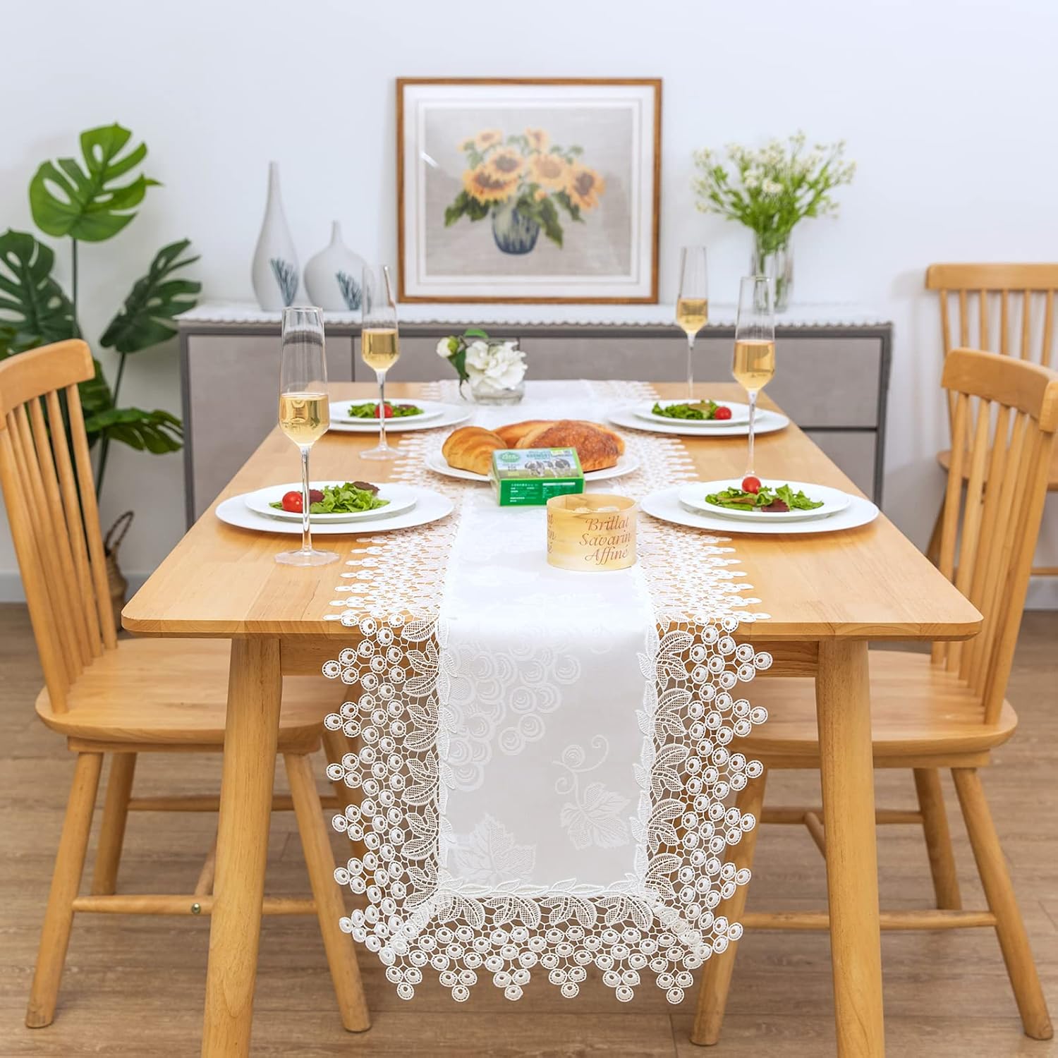 White lace Premium Rectangle Farmhouse Table Runner Waterproof OilProof SpillProof AntiShrink Soft Wrinkle Resistant Decorative Fabric Table Cover Kitchen Dinning Party Wedding Banquet