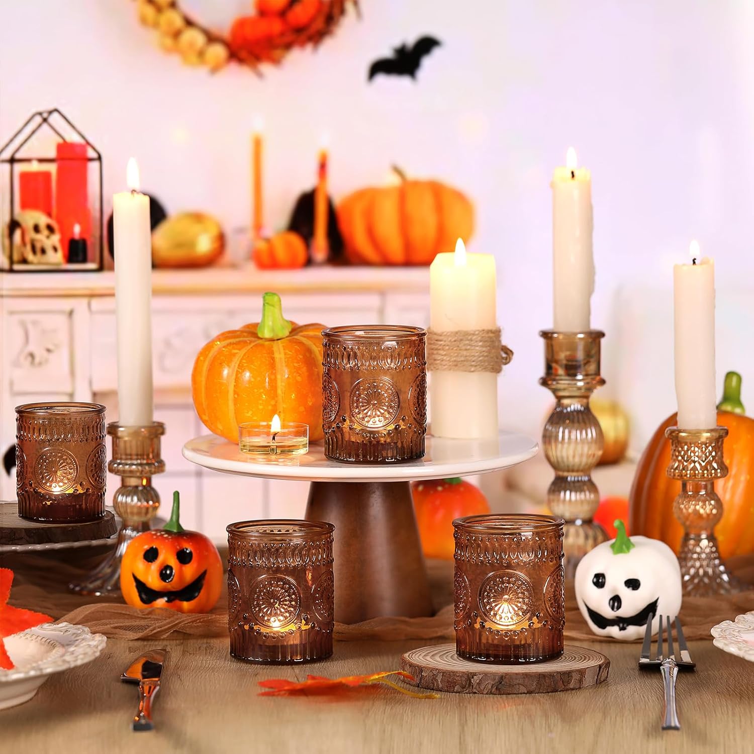 • ❤️❤️[ Votive Candle Holders Set ]❤️❤️: You will get 36 pack amber votive candle holders in your package, measuring 2.1ʺ diameter and 2.56ʺ height approximately, can be used with regular votive candles, tea light candle, and flameless LED tea waxes less than 1.5" in diameter.(Candles Excluded). These glass votive candle holders are the perfect complement to any dining table, which can be used with regular votive candles, tea light candles, flameless LED tea waxes, and edible butter candles, creating a warm and inviting ambiance that enhances the dining experience.