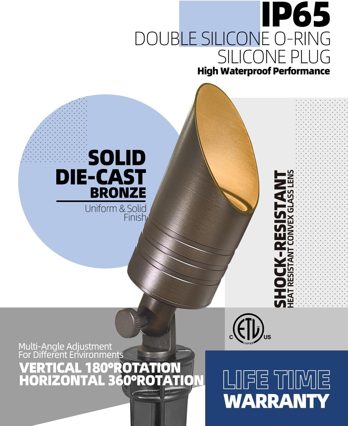 • ETL LISTED:This landscape outdoor spotlight fixture is ETL Listed to guarantee customers' safety. Work with 12V AC/DC low voltage, safe for children and pets, there is 6 feet 18GA wire easy to connect to existing systems. This spotlight must be powered by a 12-24V low voltage transformer (not included).