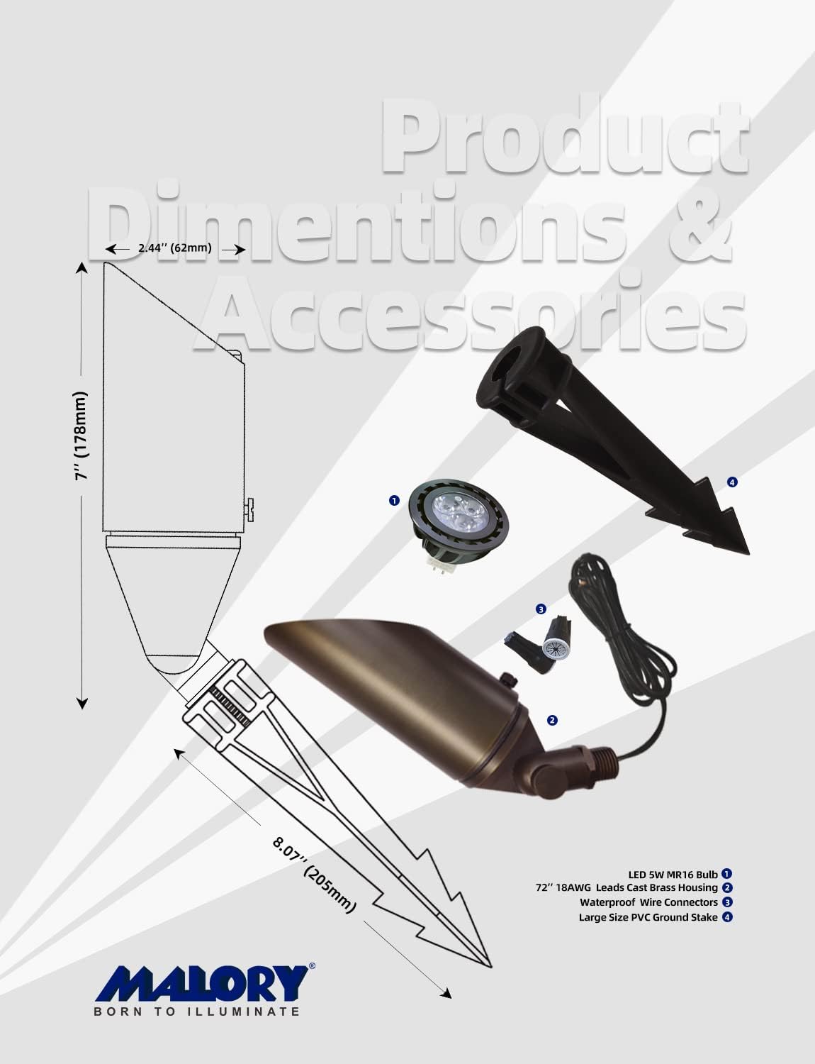 • LIFETIME WARRANTY:MALORY landscape lighting are built to the highest standards of construction and performance, we extends an industry-best lifetime warranty on its brass fixtures and 50,000 hrs for the LED bulbs.Please contact us if you have any issue, we will offer top rated customer service for you.