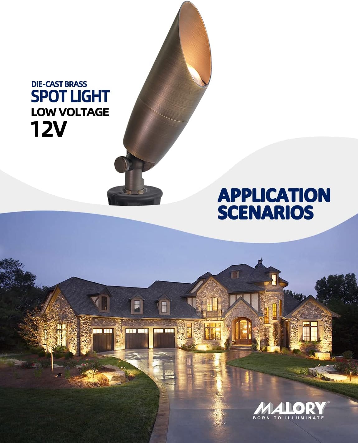 • BRASS LIGHT FIXTURE:MALORY landscape spotlight is constructed of die-cast brass for durability and beauty.Brass spot light doesn't corrode,more durable and reliable than aluminum and plastic fixtures,ideal for any uplighting application.Simple design structure for the light fixture make it looks beautiful yet unobtrusive in any landscape,suitable for decorating most houses and yards.