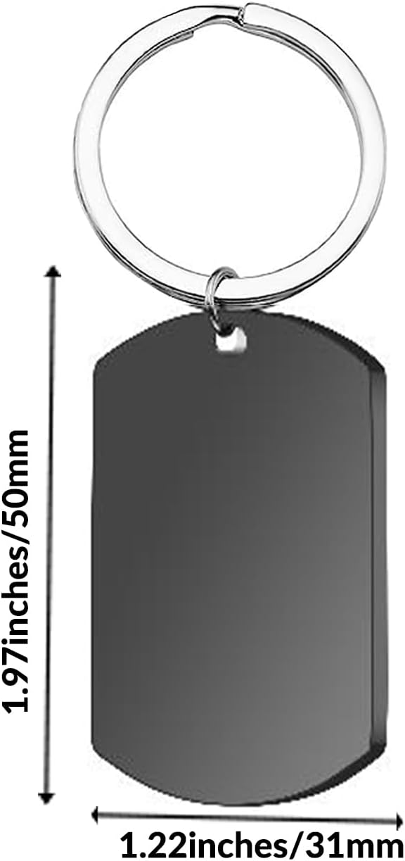 • โ— HIGH QUALITY - Material Stainless Steel, using advanced laser technology to engrave patterns and text on stainless steel surface, not easy to fade, wear or tarnish. The size of the stainless steel tag is 50mm high x 28mm wide, and the key ring radius is 28mm.Order Comes with a Gift Box.
