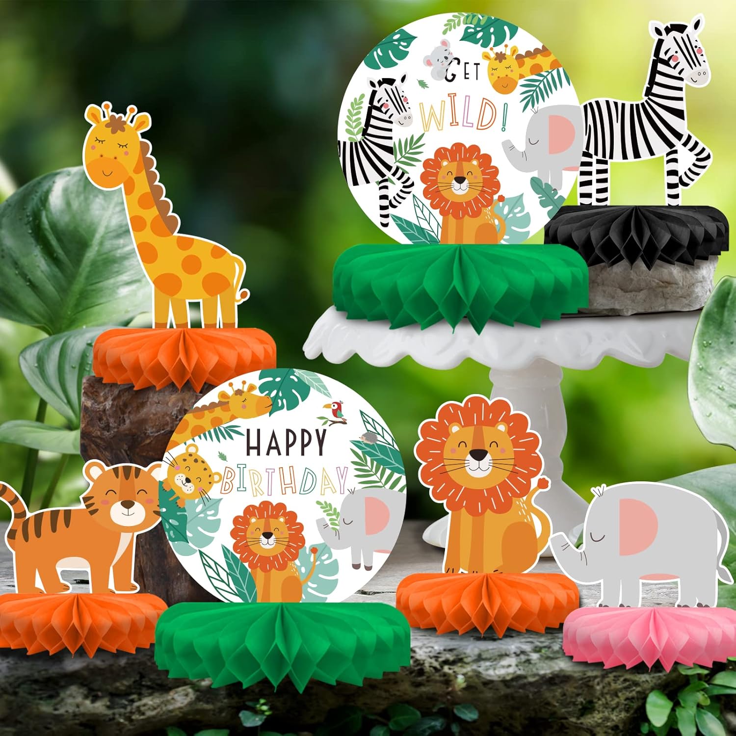 Safari Birthday Decorations Table Centerpiece - Jungle Animals Theme Party Supplies, Honeycomb Table Toppers for Animal Jungle Theme Party Decorations