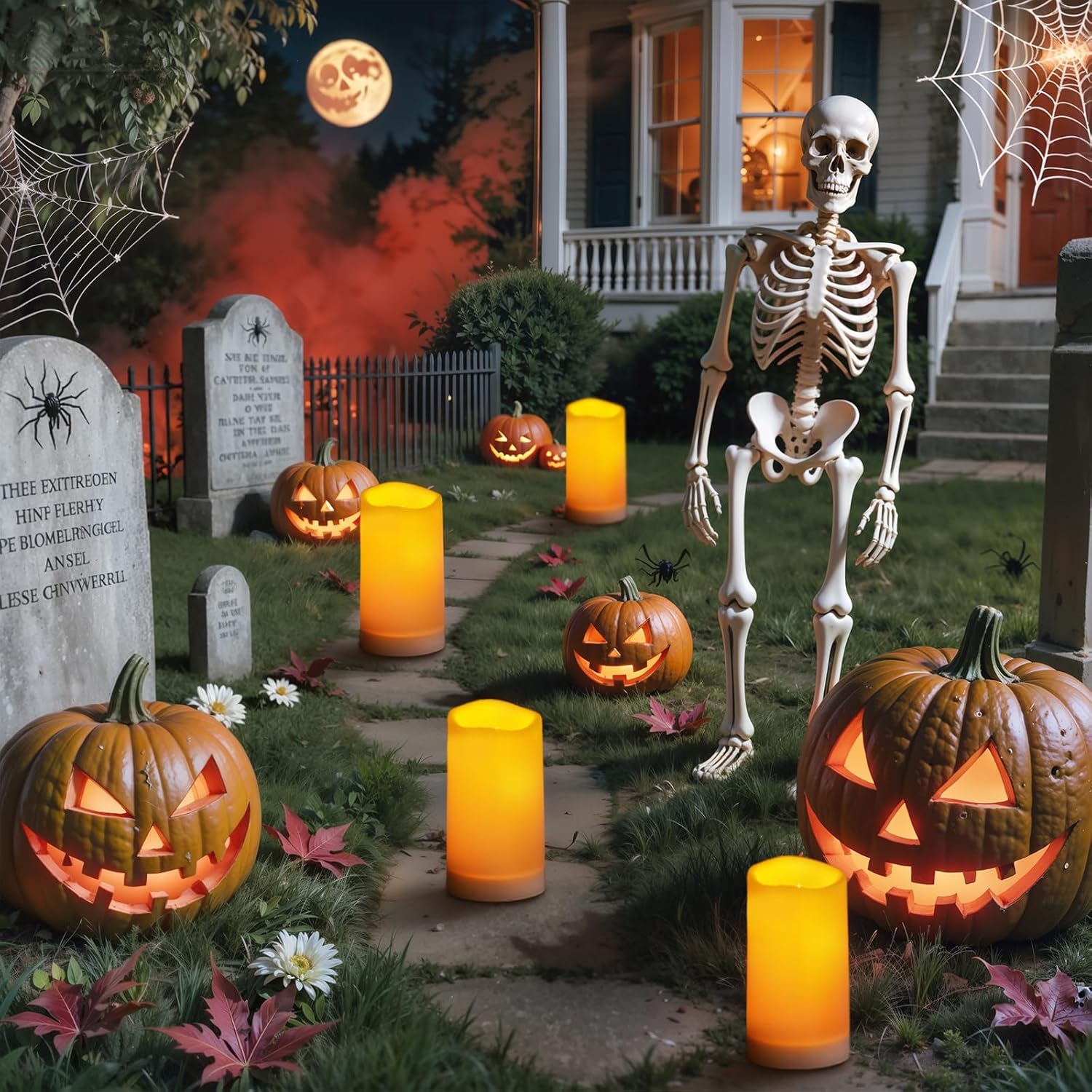 • Bright and Long-Lasting: LED bulbs of the outdoor candle emit a bright warm yellow light, the glow flickers slightly like natural candlelight. Each LED candle requires 3 x D batteries (not included). Using advanced batteries, these battery candles can light up for half a year(Auto 6H timer).