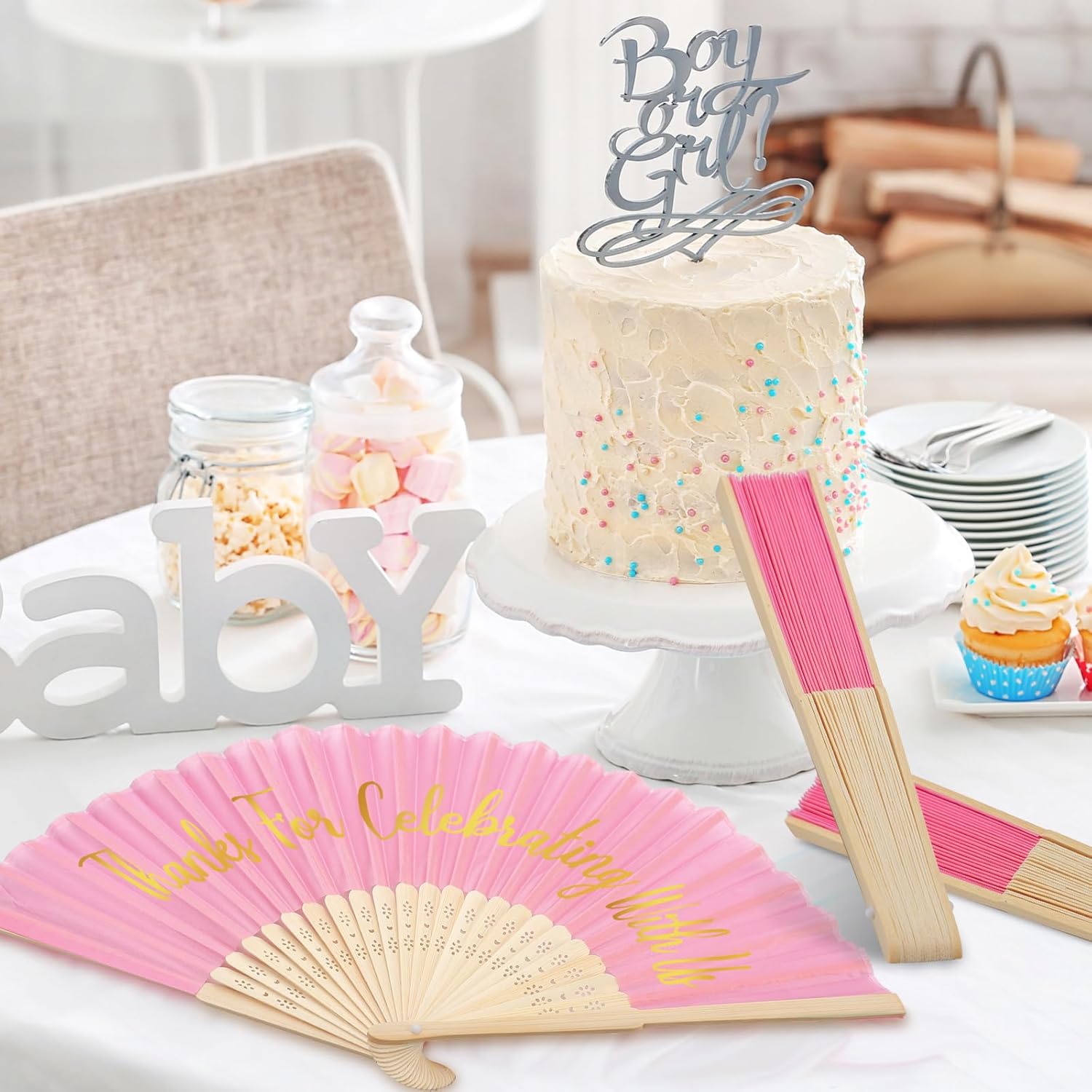 Jetec 50 Pcs Wedding Fans for Guests Bulk Silk Hand Fans Handheld Folded Thank You for Celebrating with Us Wedding Favors for Bridal Bridesmaid Baby Shower Dancing Party Church Gift(Pink)