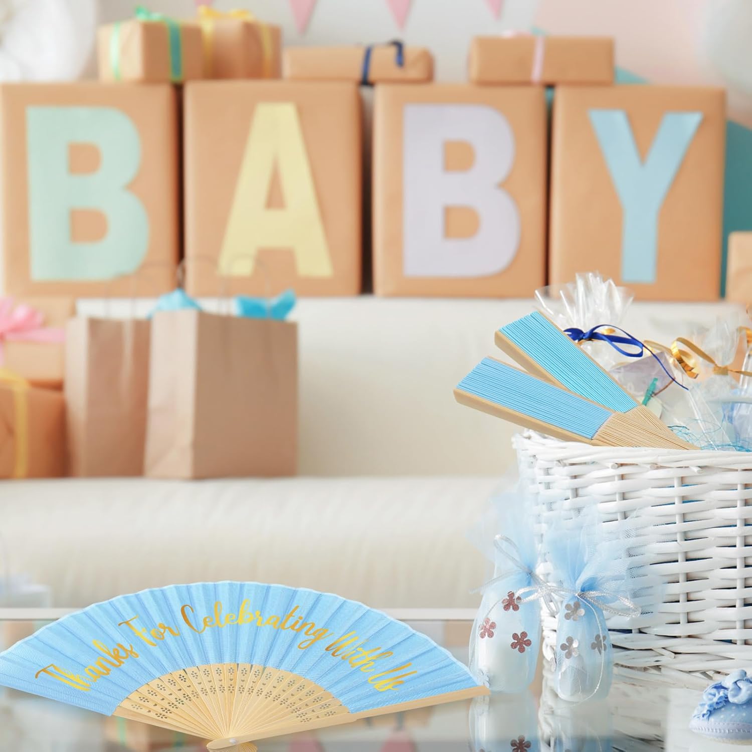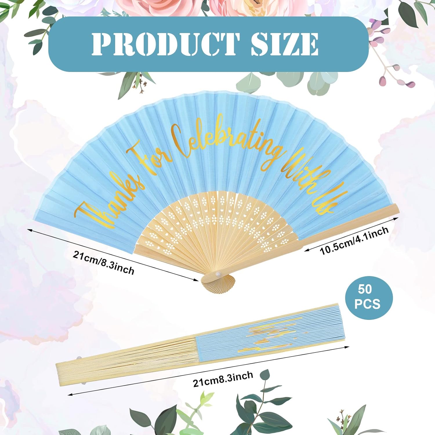 Jetec 50 Pcs Wedding Fans for Guests Bulk Silk Hand Fans Handheld Folded Thank You for Celebrating with Us Wedding Favors for Bridal Bridesmaid Baby Shower Dancing Party Church Gift(Blue)