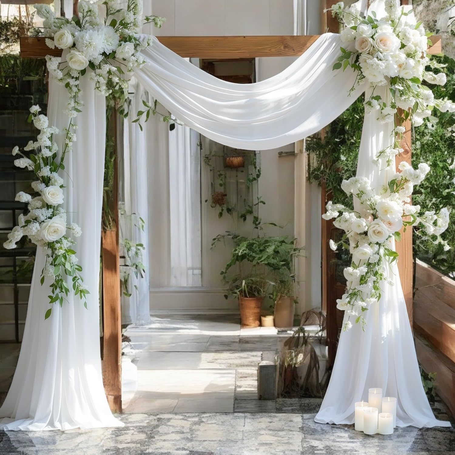 • MULTI-SCENES USES : The drapes made the entire wedding come together, perfect for your indoor outdoor baby shower parties, bridal shower, baby showers, holiday parties,wedding, family gatherings, dessert tables, candy tables.White wedding arch drape fabric can also be used on a canopy, chuppah, arbor or altar.This wedding arches for ceremony is perfect for creating beautiful pleats or letting it float off the floor, adding a very delicate, soft, beautiful touch to your stage at any event.