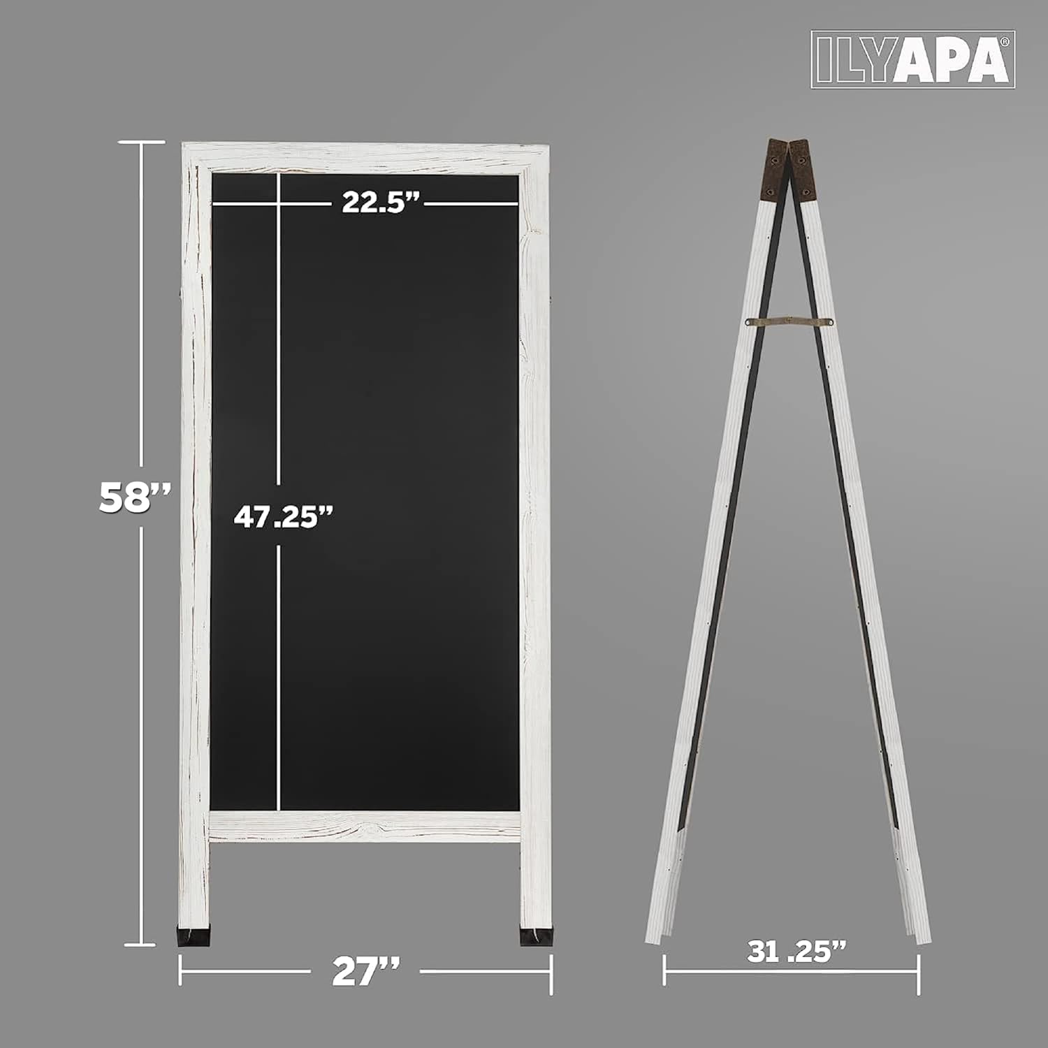 Ilyapa A-Frame Chalkboard Sidewalk Sign - 58 x 27 inches, Folding Standing Sandwich Sign – White Menu Display for Restaurant, Business, or Weddings