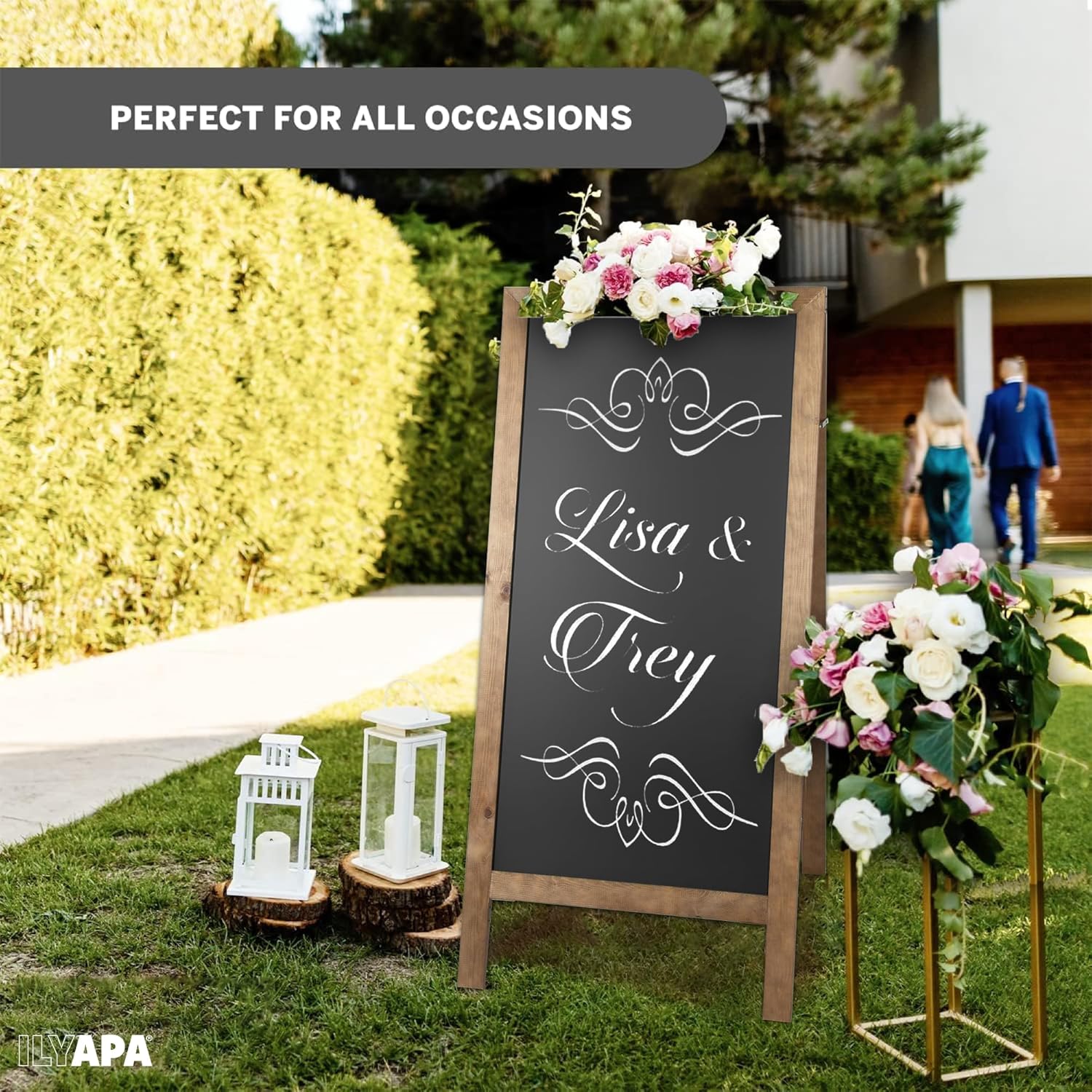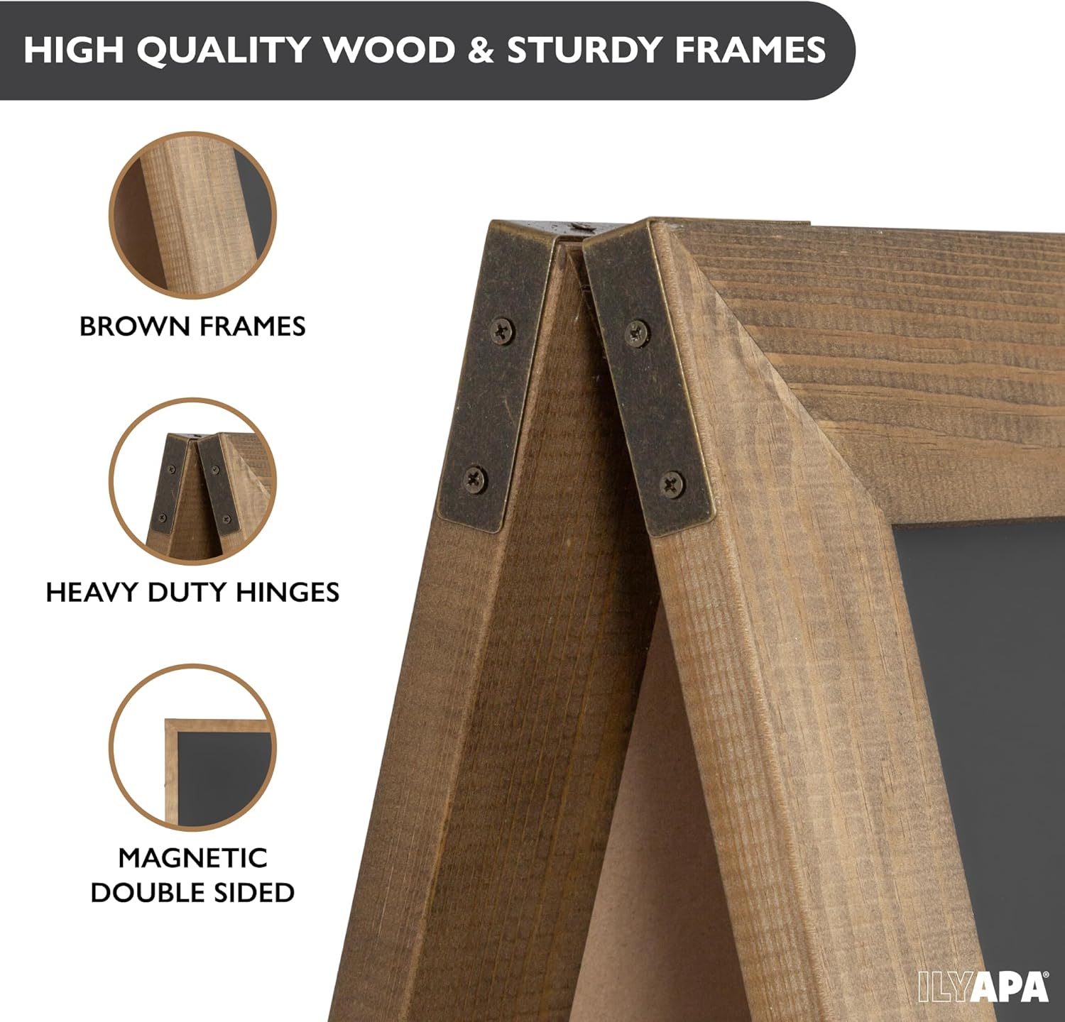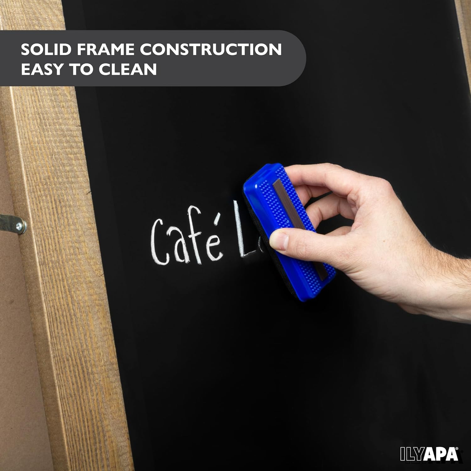 Ilyapa A-Frame Chalkboard Sidewalk Sign - 58 x 27 inches, Folding Standing Sandwich Sign – Freestanding Barnwood Magnetic Sandwich Menu Display