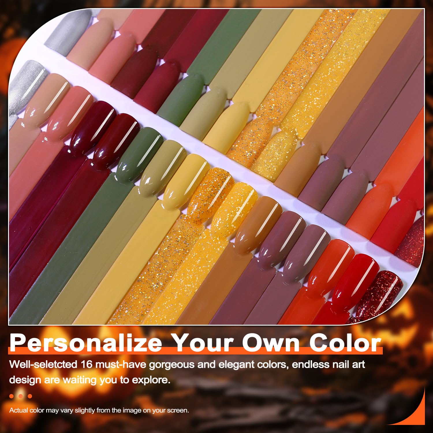 Lavender Violets 22pcs Halloween Dip Powder Nail Kit 16 Colors Red Brown Gold Green with Dip Powder Liquid Perfect Gift for Women Nail Art DIY M967