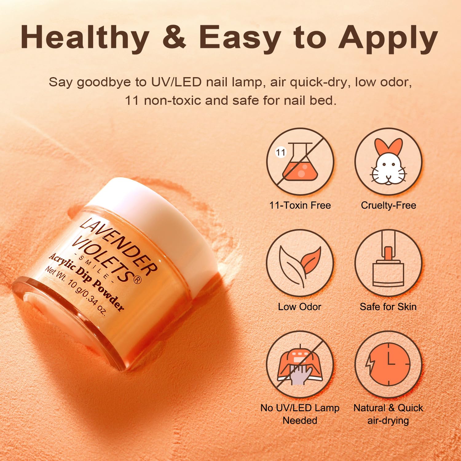 • Crafted by Lavender Violets, known for quality and innovation dipping powder, this dip powder set also includes dip powder liquid set like dip base coat, top coat, activator, brush saver, Nail Brush, Nail File, and two replacement brushesβ€”ensuring you have everything you need for a flawless dips manicure experience. Elevate your nail game with our dip powder nail kit, designed for beauty enthusiasts who value both style and convenience.