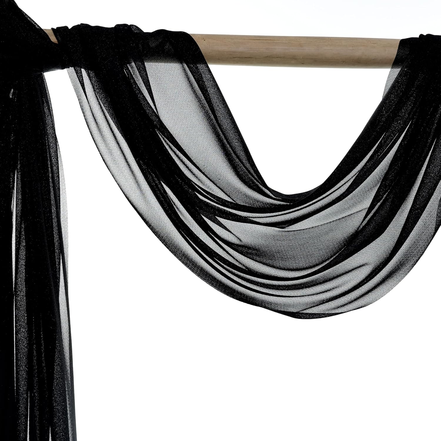 VDS Pack of 2 Panel (30 Inch X 20 Feet) Wedding Arch Draping Fabric Sheer Chiffon Fabric Drapery for Wedding Ceremony Reception Swag Backdrop Canopy Chuppah ARBO Altars Decoration (Black)