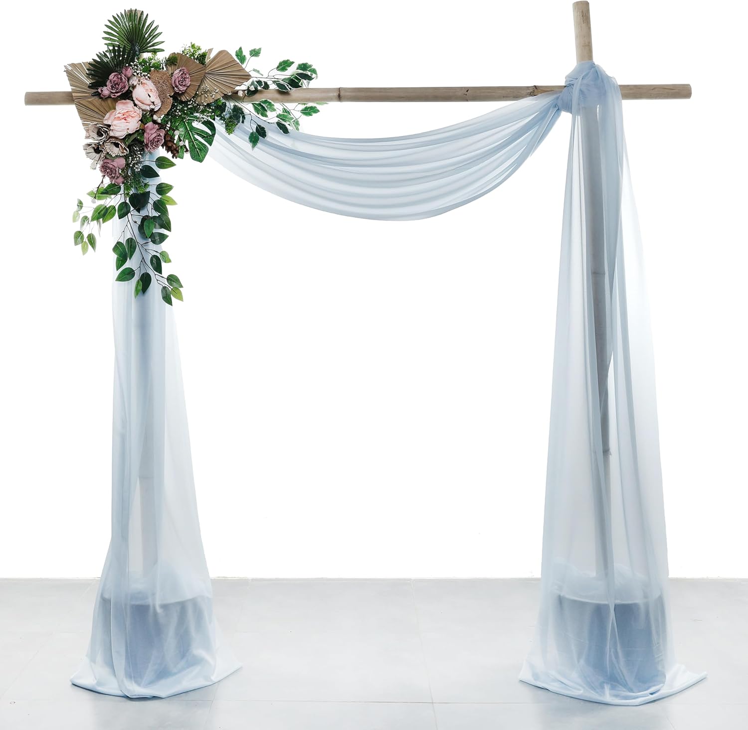 VDS Pack of 2 Panel (30 Inch X 30 Feet) Wedding Arch Draping Fabric Sheer Chiffon Fabric Drapery for Wedding Ceremony Reception Swag Backdrop Canopy Chuppah ARBO Altars Decoration (Baby Blue)
