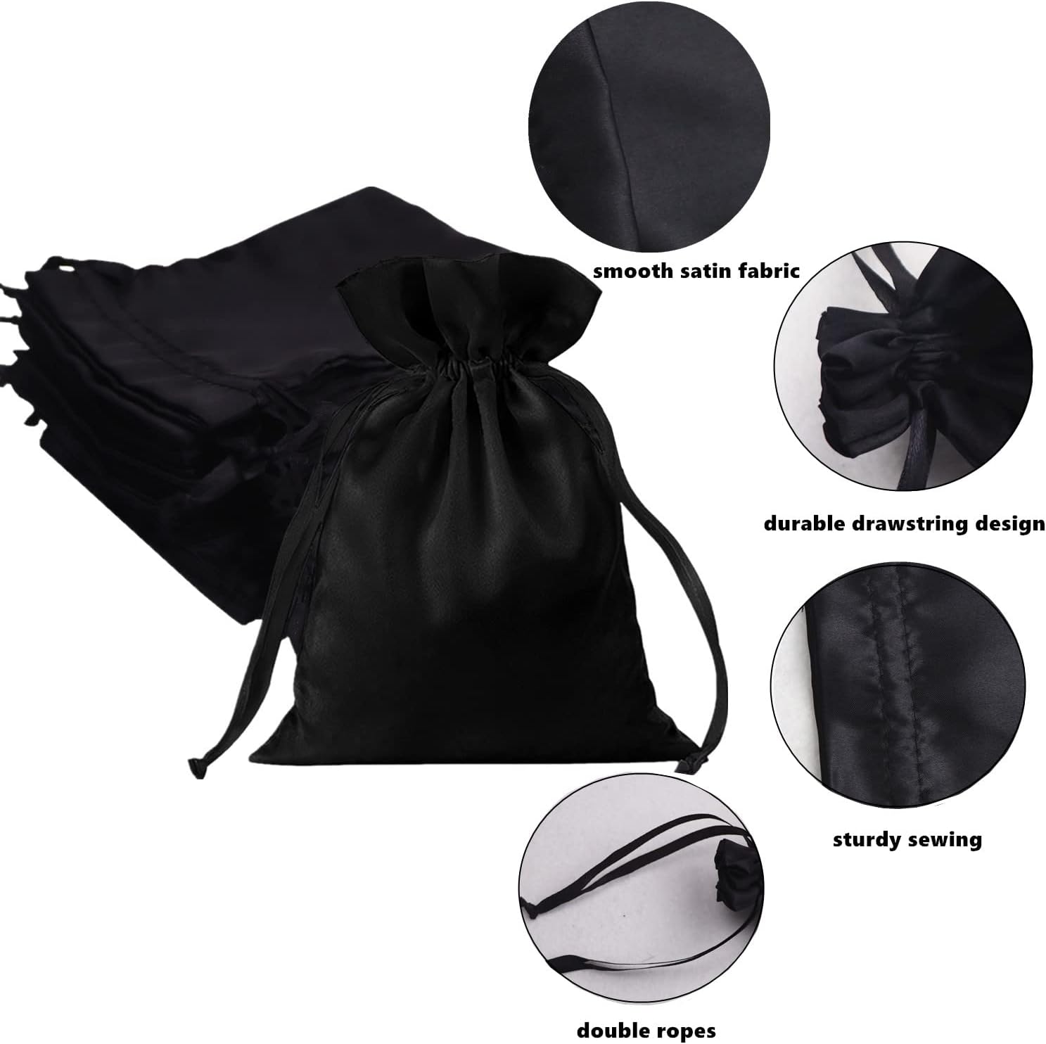 • ๐Ÿ’– Premium Quality: Our satin bags are well made with smooth satin fabric with a glossy soft touch and drawstring closure, which is durable enough to hold heavier items, soft, smooth, comfortable, elegant. and easier to fasten to avoid objects lost.