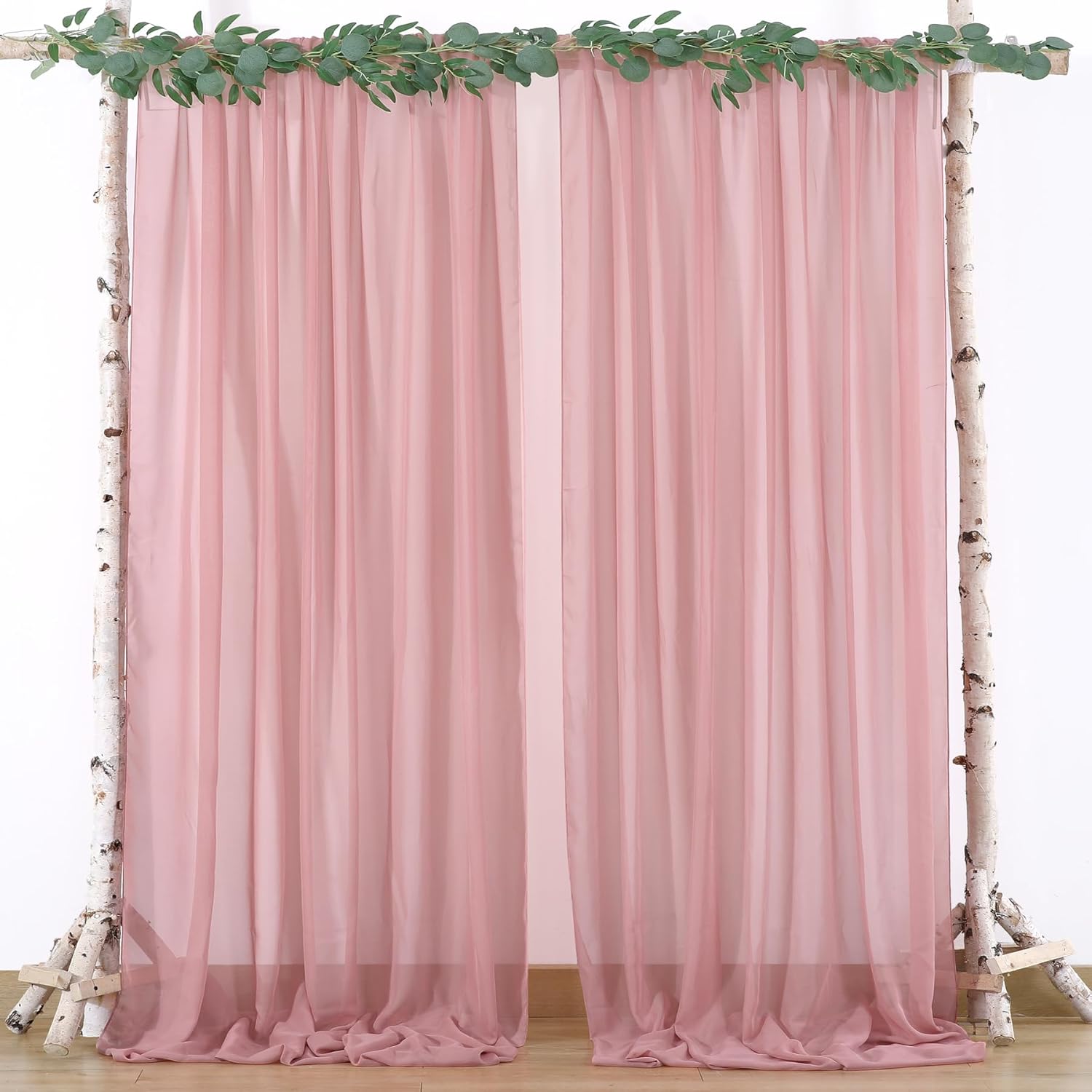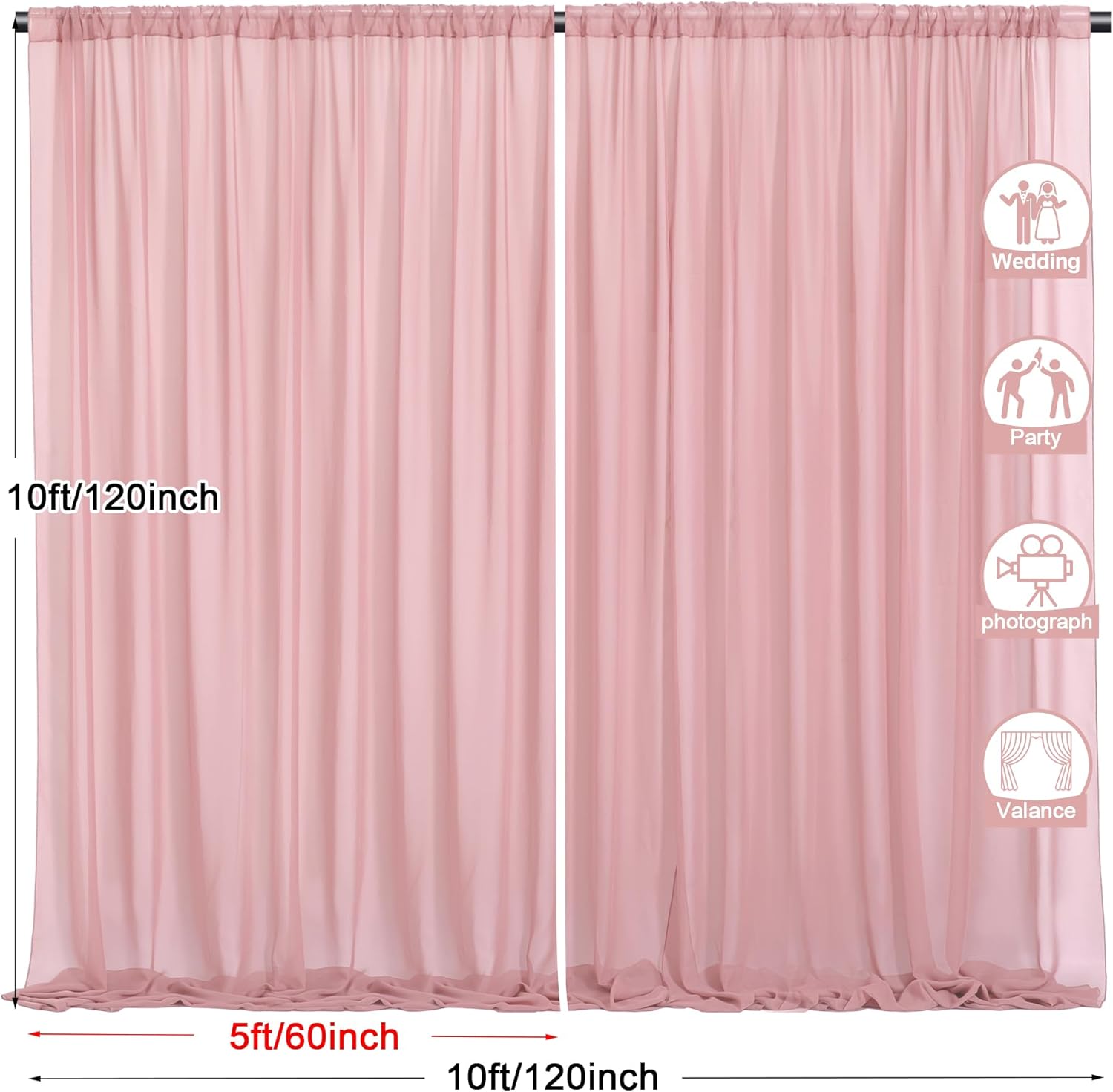 • 2 Panels Backdrop Drapes: Come with 2 panels Dusty Rose chiffon backdrop curtains,each panels size is 5ft width and 10ft height. Combined, entire backdrop curtains is 10ft*10ft. Please note: Not including the background stand