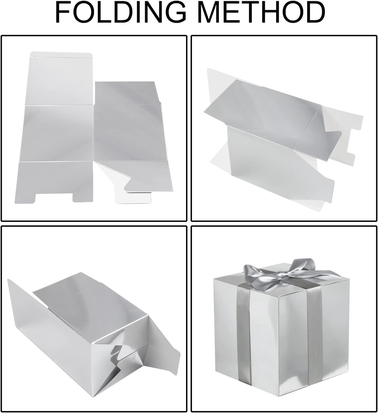 COTOPHER Small Gift Boxes 25 Pack 6x6x6 inches Silver Gift Boxes with Lids for Gifts, Crafting, Wedding Party Favor, Cupcake Boxes, Candy, Bridesmaids Proposal Box with Ribbons and Stickers