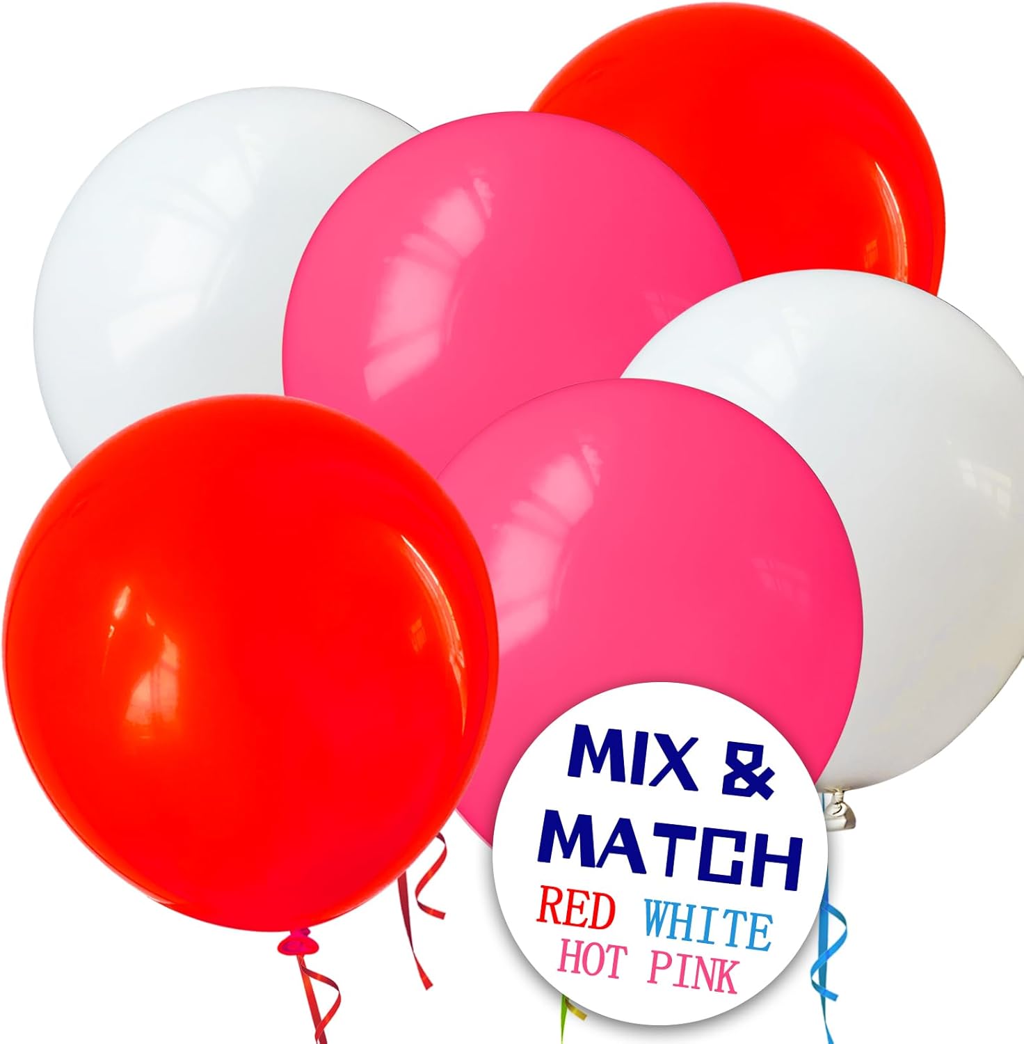 • Order us you will get 110pcs 12 inch hot pink baloons and 2 rolls of ribbons in random colors.
