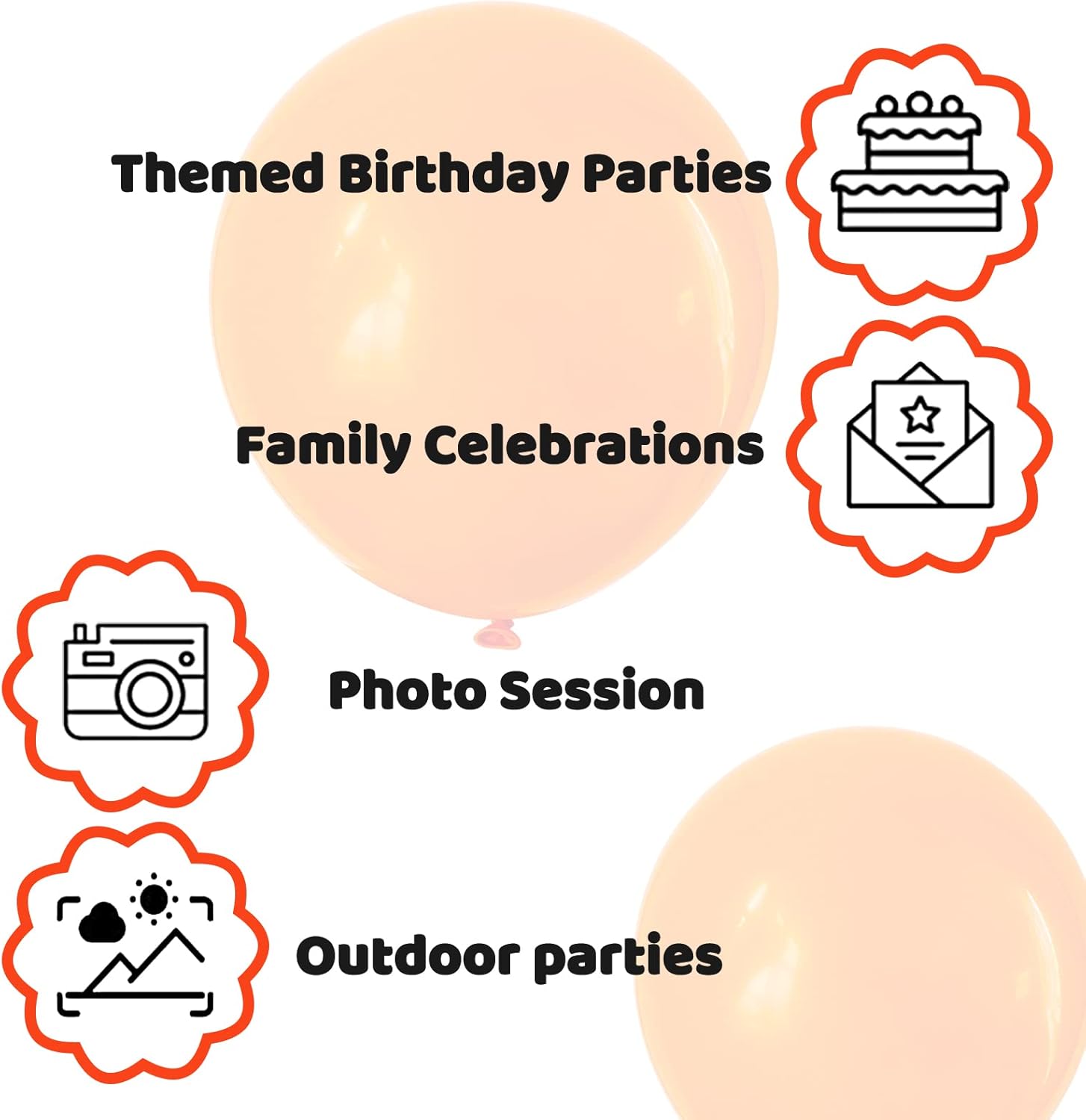 • The 12 inch orange Latex Party Balloons included in the package can make your Party Decoration such as Birthday Party, Baby Shower,Wedding, Halloween or Christmas Party, etc. have enough orange Balloons to decorate.