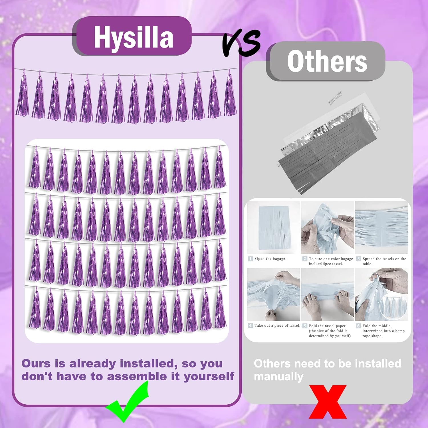 • 【Light Purple Party Supplies Set】: The total length of the light purple birthday tassels banner is 39.3 feet, divided into 4 strips, each 9.8 feet long. Each banner contains 15 tassels, and each tassel measures 14 inches, for birthday decorations many occasions, and so on